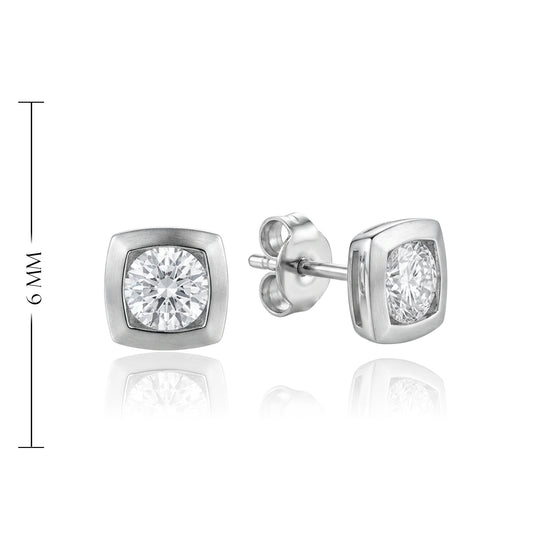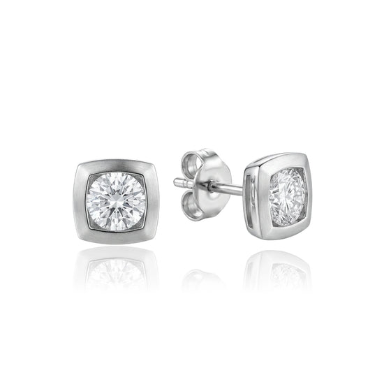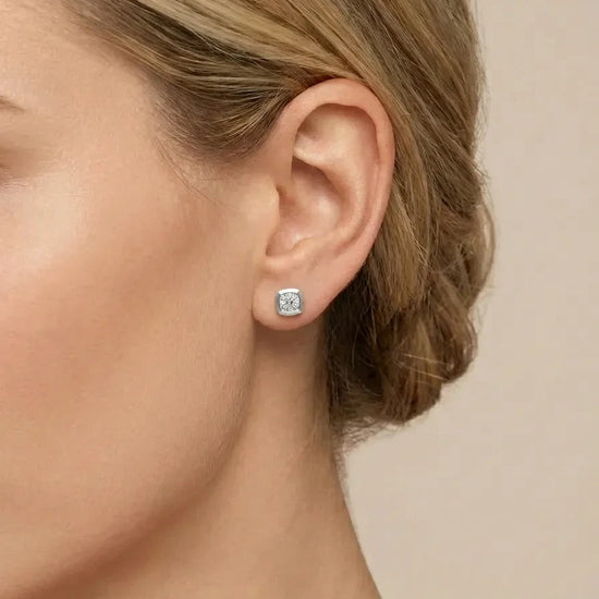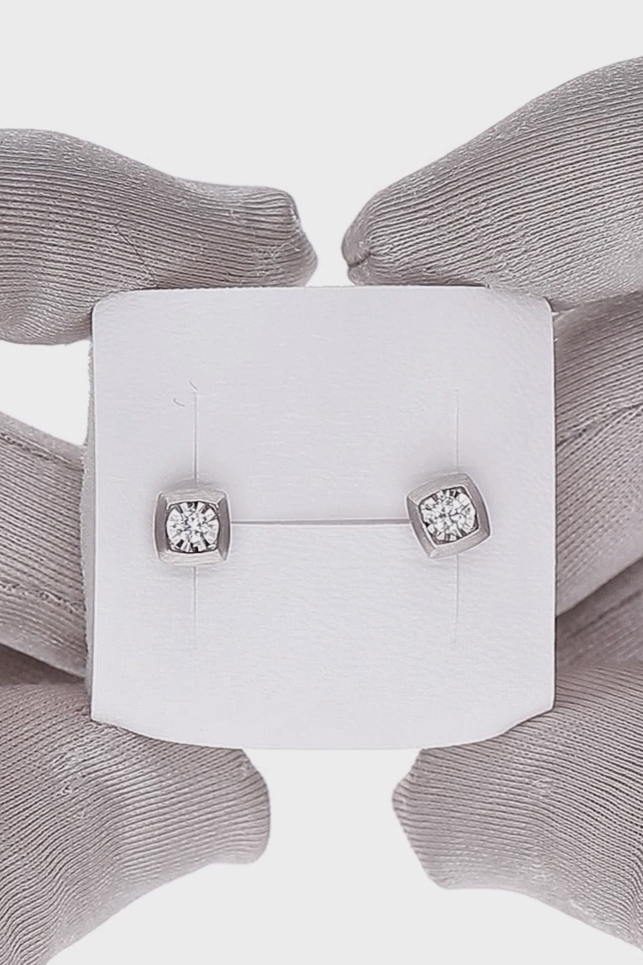 Gold earrings with diamonds are modern and elegant, featuring a square shape that subtly frames the central diamond. A sturdy tag-style clasp provides comfort for everyday wear, while the clean sparkle of the diamond complements the minimalist design.