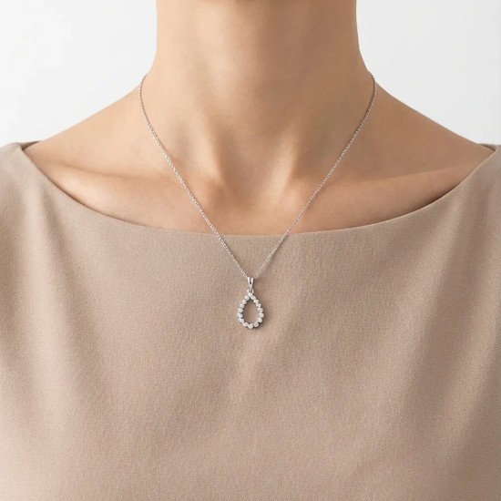 The pendant made of white gold with white eyelets captivates with its minimalist yet luxurious design.