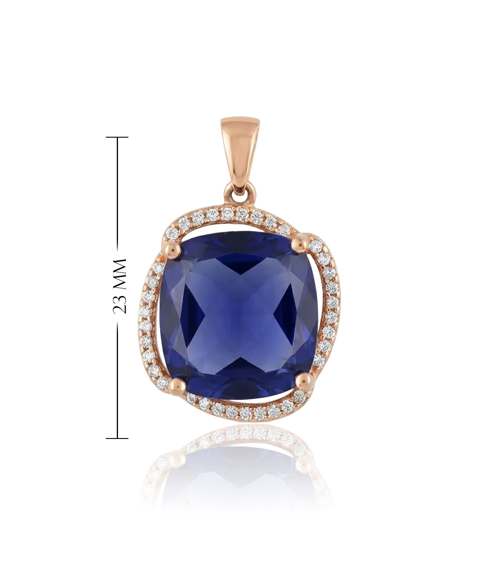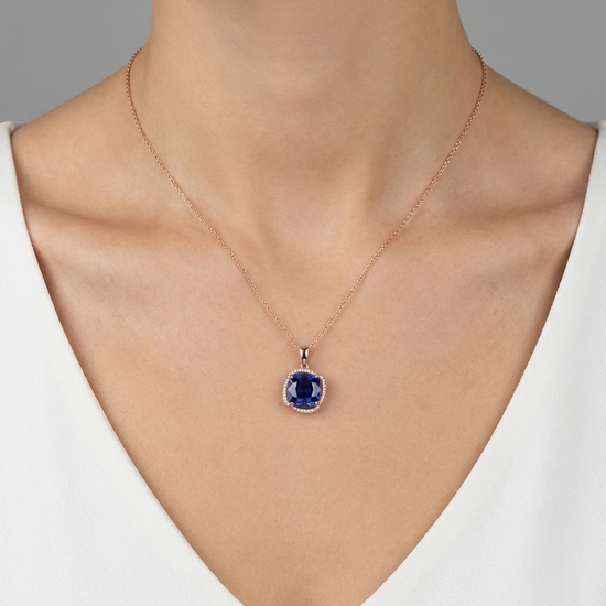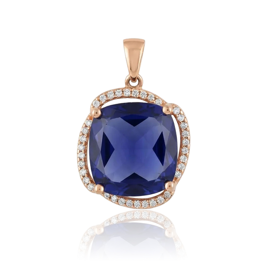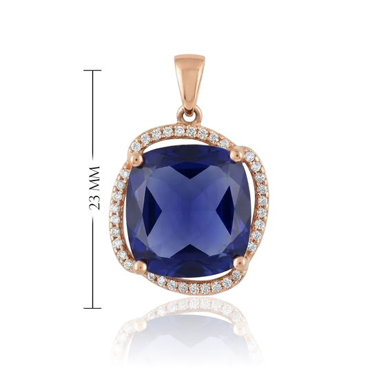 A red gold pendant with a larger blue eye and a circle of white zircons is a luxurious and expressive piece of jewelry.
