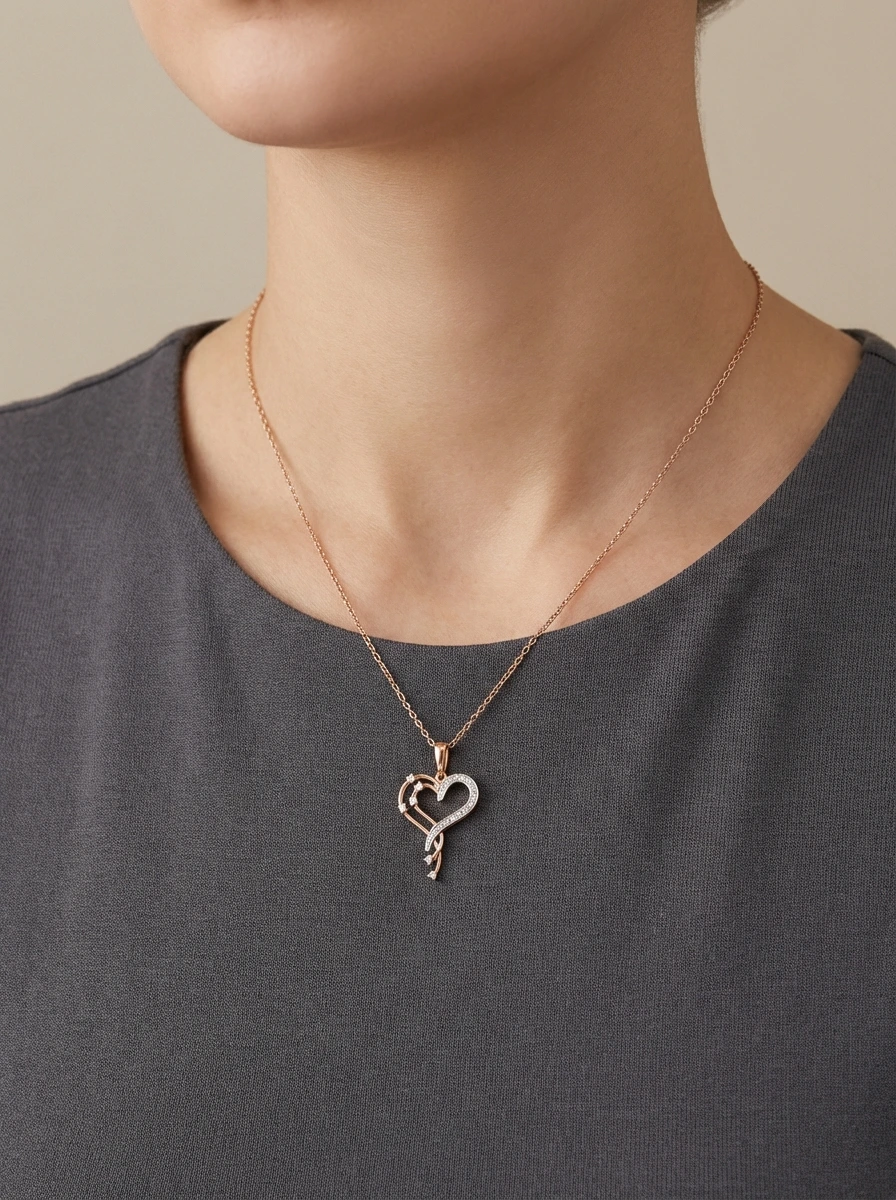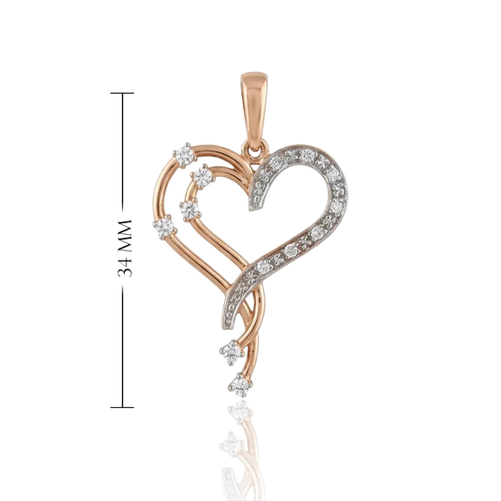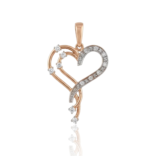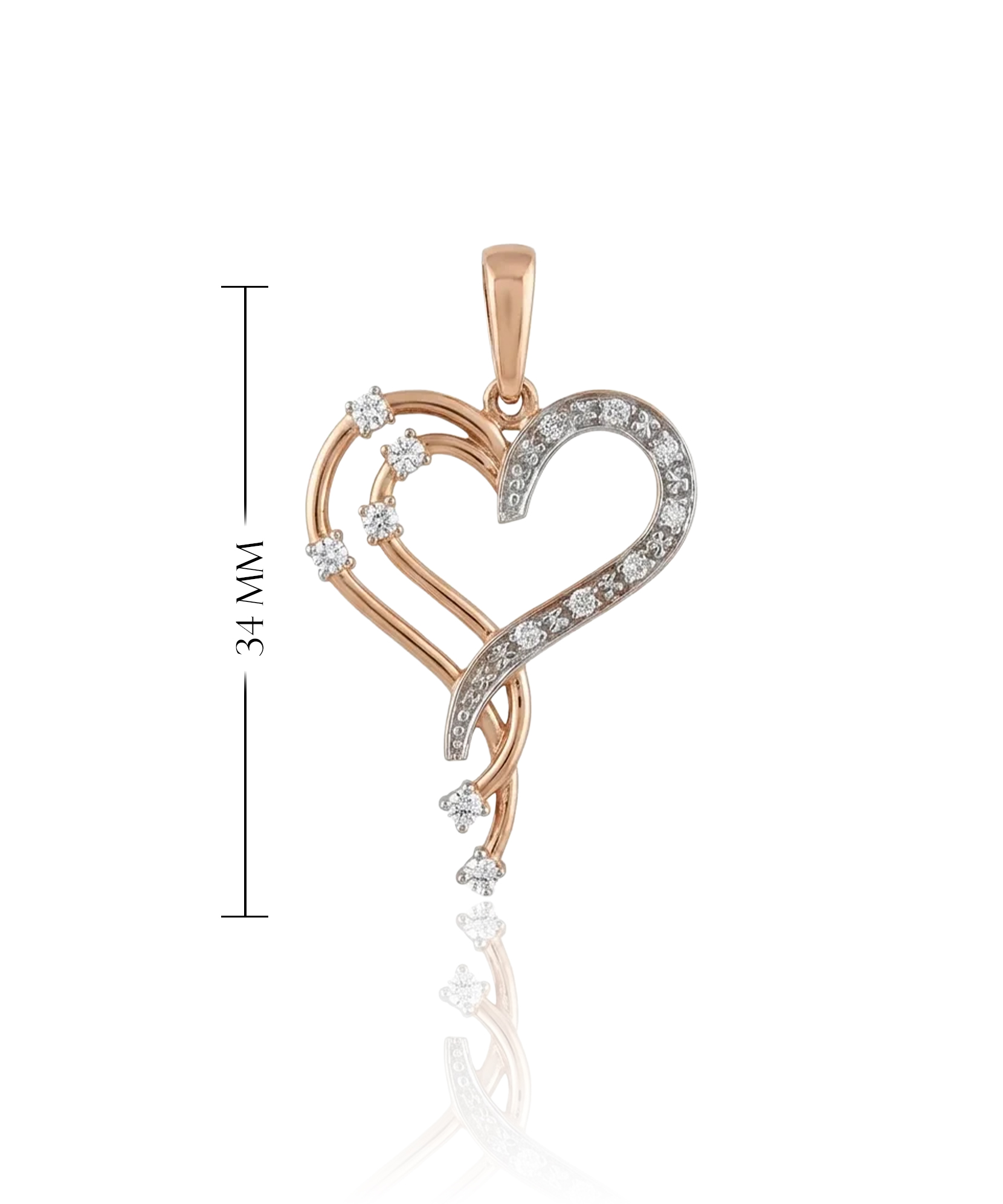 A luxurious pendant made of red and white gold with sparkling eyes attracts the eye with its harmonious design.