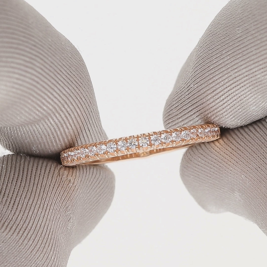 Elegantiškas 585 prabos raudono aukso žiedas, puoštas viena eile žėrinčių baltų cirkonių. Klasikinis, tačiau modernus dizainas su atviresniu akmenų tvirtinimu leidžia šviesai gražiai atsispindėti ir suteikia išskirtinio spindesio.