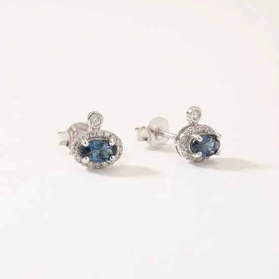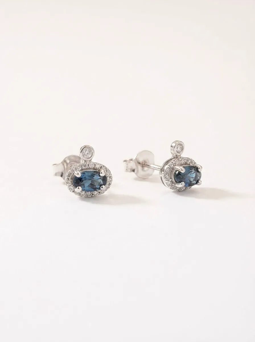 Zelta auskari ar topāzu un dimantiem - smalks un elegants dizains, kurā zils topāzs ir smalki apvienots ar maziem dimanta akcentiem. Ovālas formas akmens uzsver auskaru vieglumu, savukārt apaļā dimanta maliņa piešķir papildus mirdzumu. Sprādzes tipa aizdare nodrošina ērtu un drošu valkāšanu.