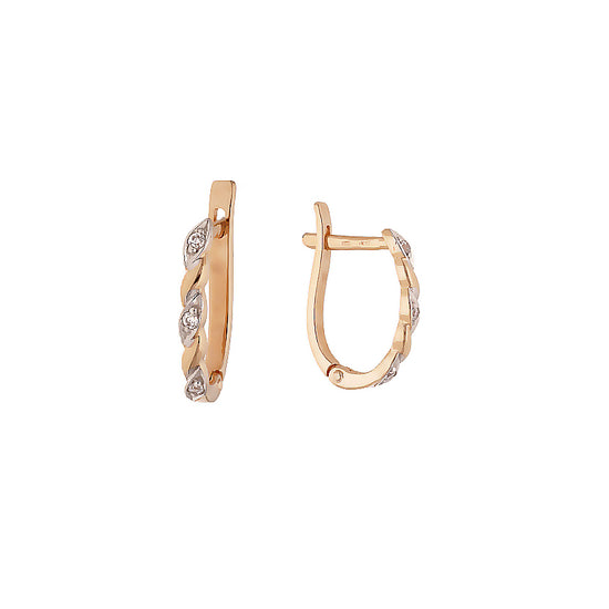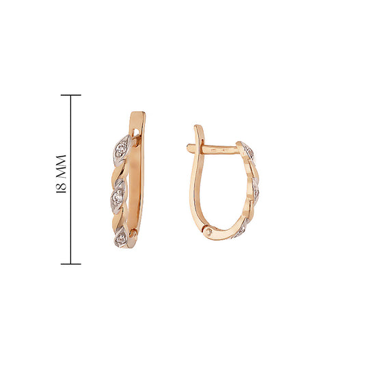 Raudono aukso auskarai su žėrinčiomis akutėmis spindi šiltu ir prabangiu žavesiu. Klasikinis dizainas ir kruopščiai inkrustuoti akmenėliai suteikia elegancijos bei išskirtinumo.