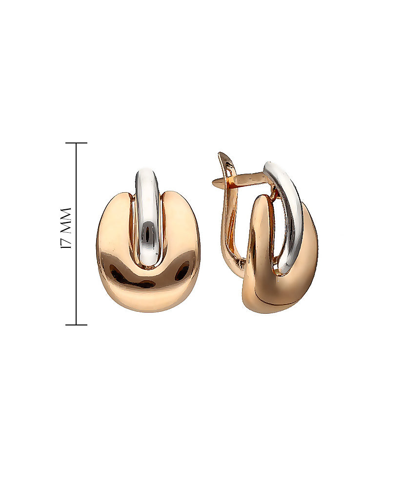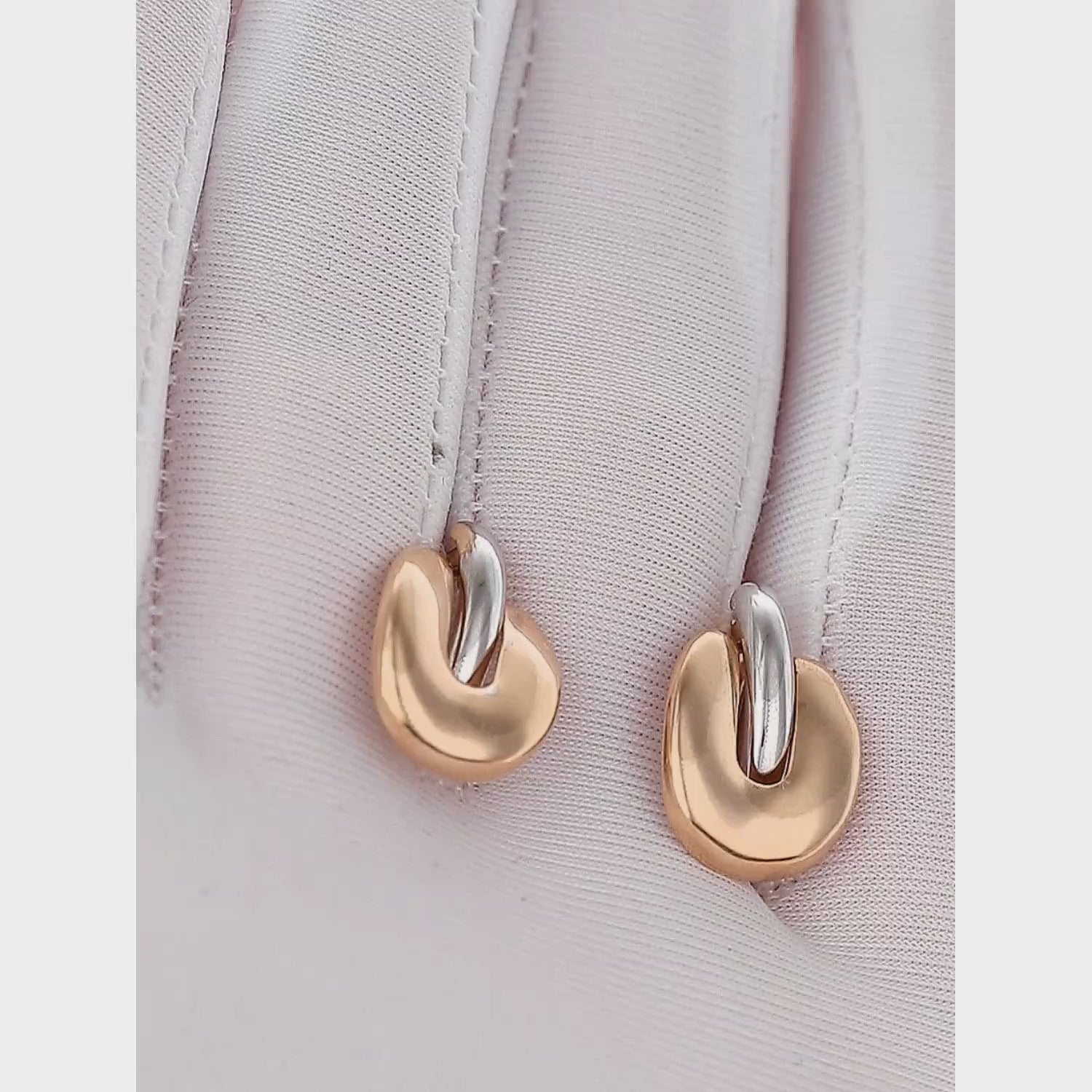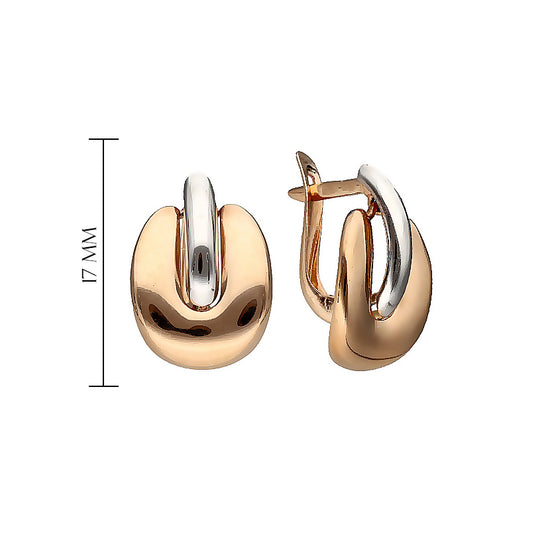 Modernūs dviejų spalvų aukso auskarai (17 mm), kuriuose dera šiltas raudonojo aukso atspalvis ir elegantiškas baltasis auksas. Išraiškinga forma suteikia papuošalui šiuolaikiškumo, tačiau išlaiko klasikinę prabangą. Universalūs auskarai, tinkantys tiek kasdieniam dėvėjimui, tiek ypatingoms progoms.