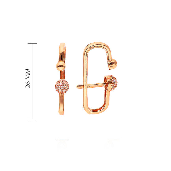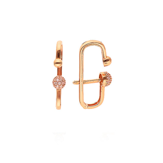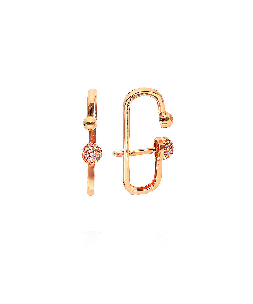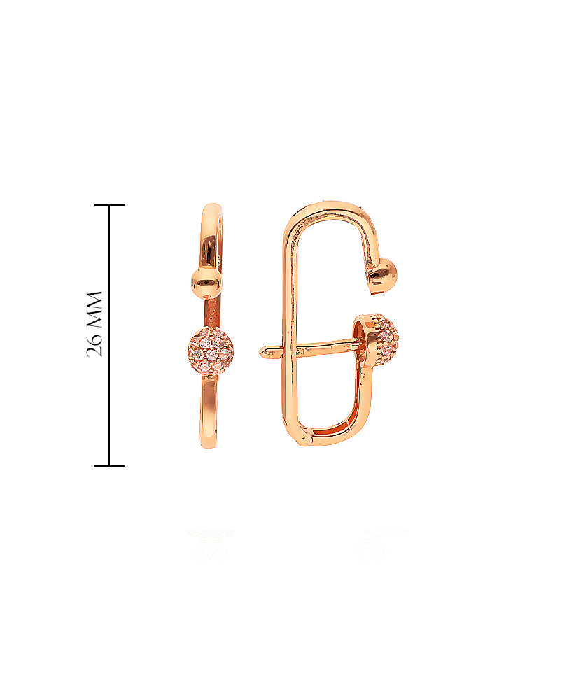 Modernūs minimalistinio dizaino auskarai iš raudonojo aukso, dekoruoti subtiliu cirkonio akmenuku. Lengvai lenkta forma sukuria elegantišką įspūdį, o spindintis akmuo suteikia išraiškingumo. Puikus pasirinkimas kasdieniam dėvėjimui ar stilingai progai.