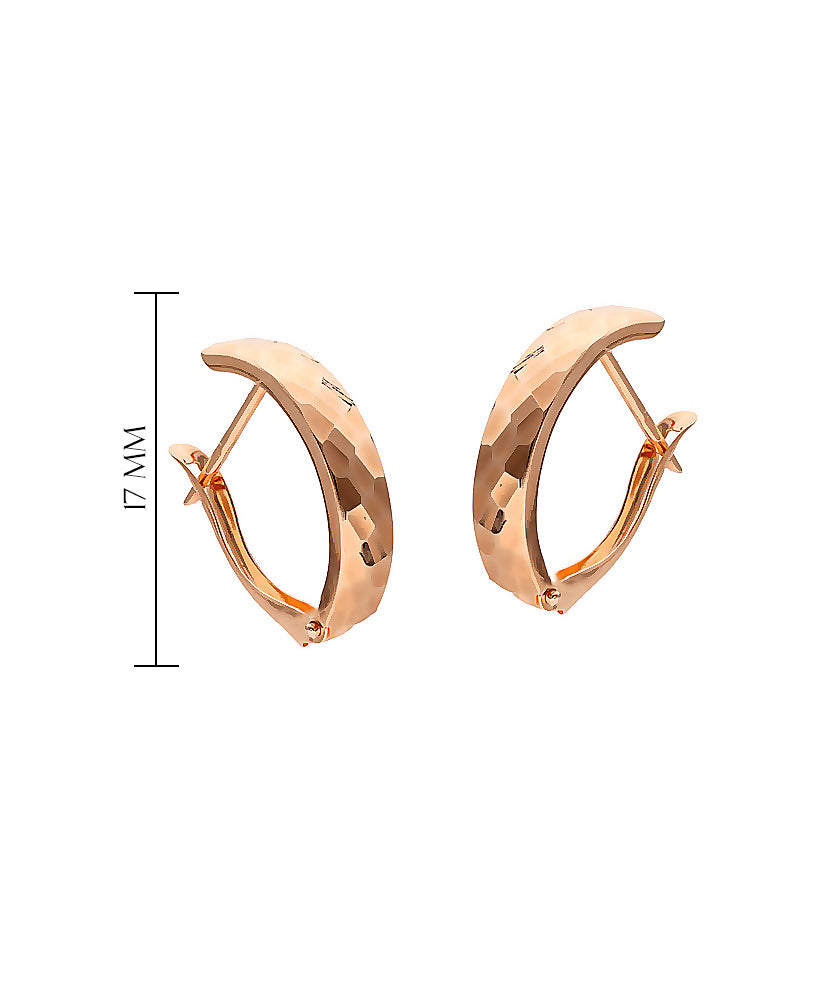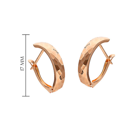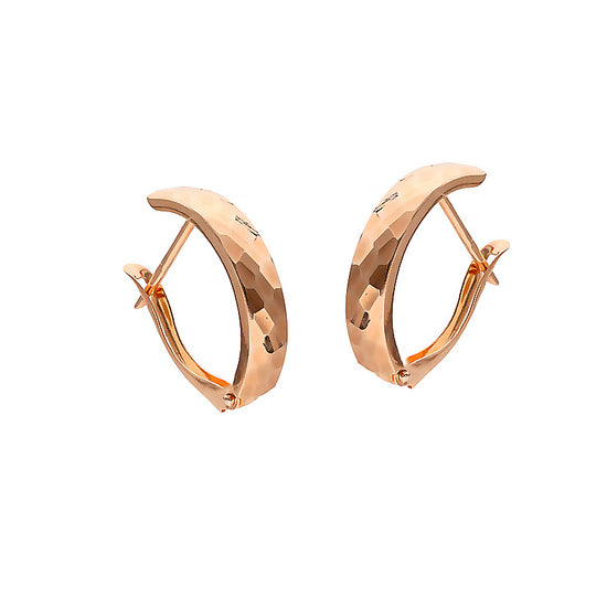 Klasikiniai raudonojo aukso auskarai (17 mm) su unikaliu deimantiniu graviravimo efektu. Subtiliai atspindintis paviršius suteikia auskarams modernios elegancijos ir šviesos žaismo. Lengva forma ir patikimas angliškas užsegimas užtikrina patogų nešiojimą tiek kasdien, tiek ypatingomis progomis.