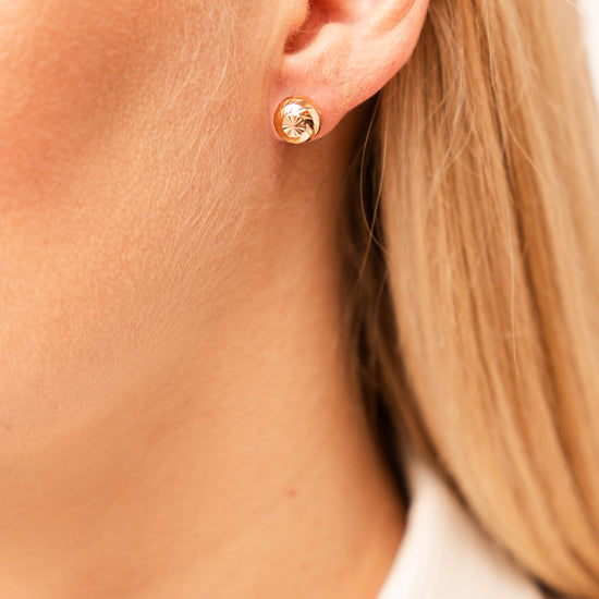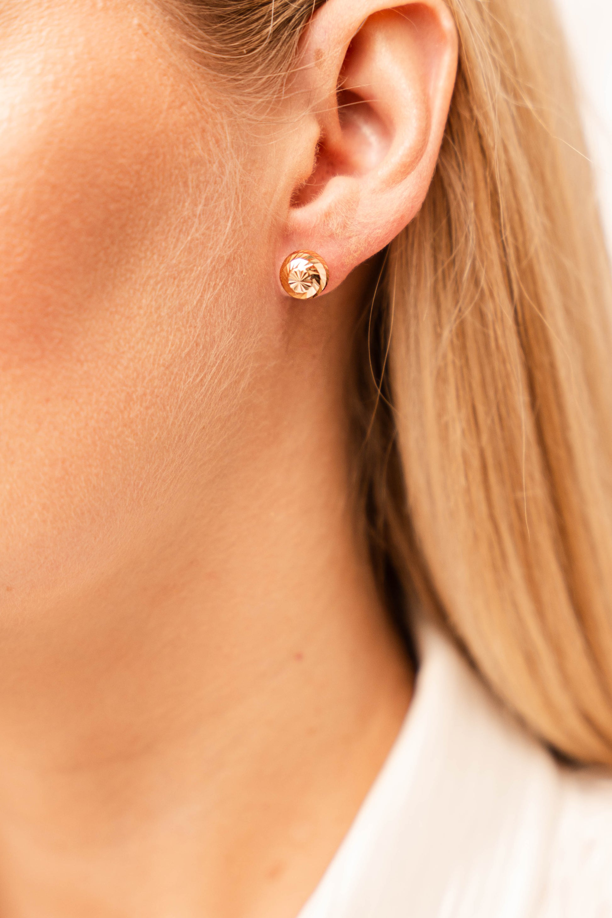 Subtilūs raudonojo aukso auskarai vinukai (8,5 mm) su spindinčiu efektu. Sferinė forma elegantiškai atspindi šviesą, suteikdama papuošalui gyvybingumo ir išskirtinumo. Klasikinis dizainas puikiai tinka kasdieniam nešiojimui ar ypatingai progai.