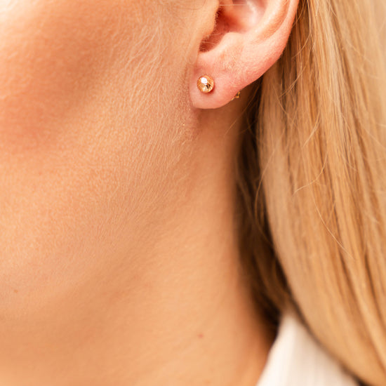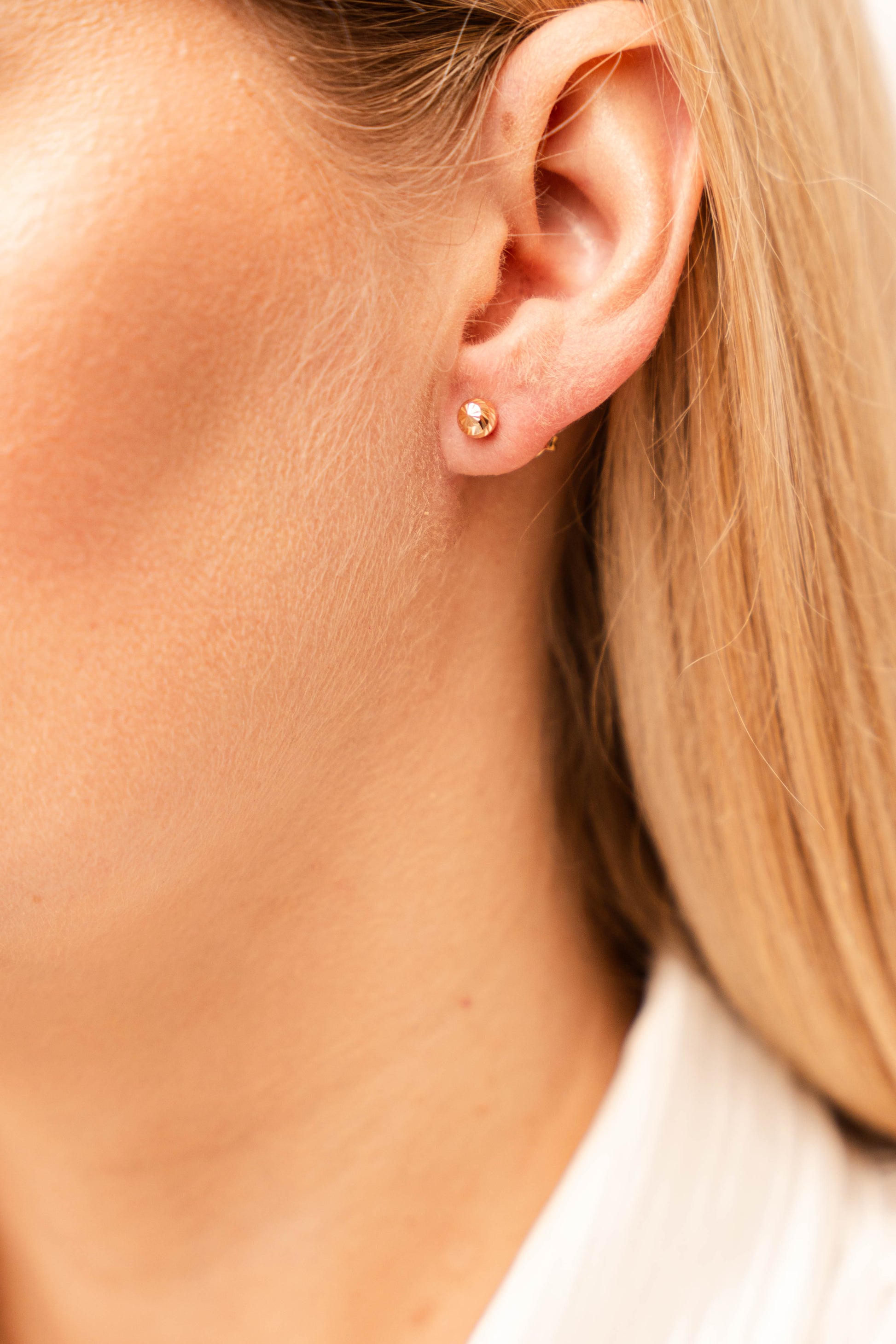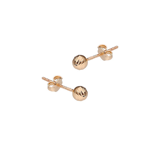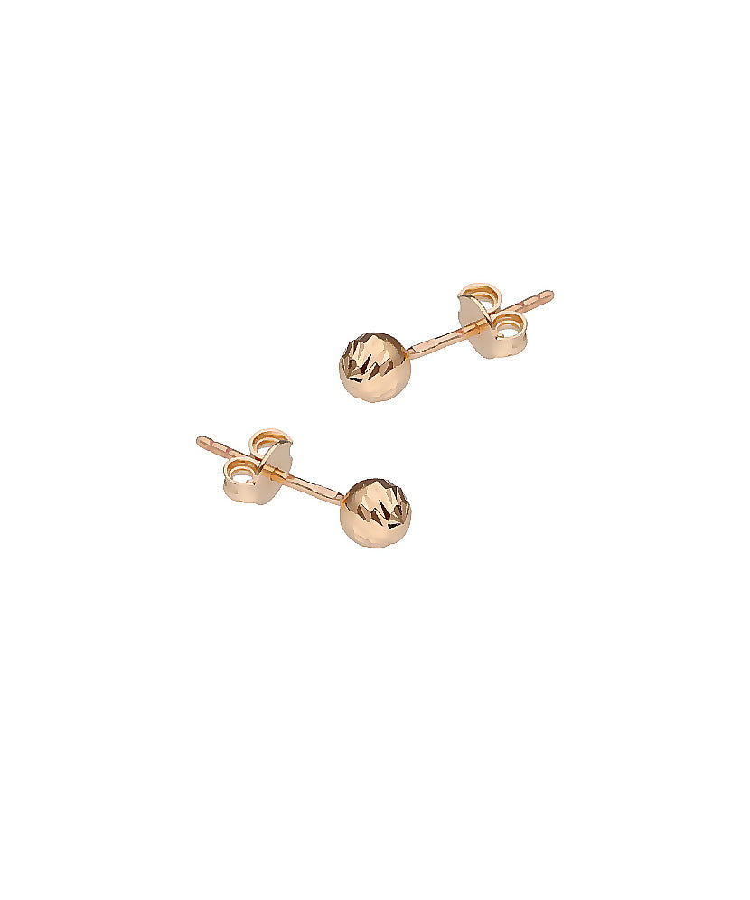 Subtilūs minimalistinio dizaino raudonojo aukso auskarai vinukai su grakščia rutuliuko forma. Graviruotas paviršius švelniai laužo šviesą ir suteikia auskarams žaismingumo bei išskirtinumo. Tai puikus pasirinkimas kasdieniam įvaizdžiui, taip pat daili dovana subtilumą vertinančiai moteriai. 5mm skersmens