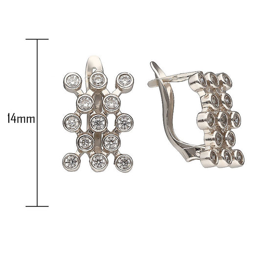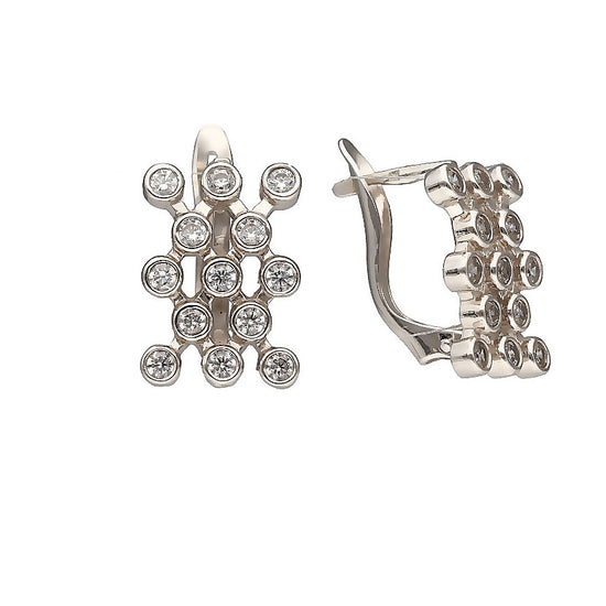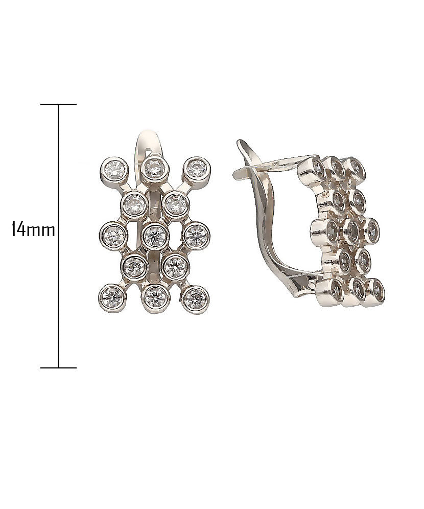 Šie elegantiški auskarai pagaminti iš 585 prabos (14K) Šie išskirtiniai balto aukso auskarai, puošiami aukščiausios kokybės cirkoniais, yra tikra elegancijos ir rafinuotumo įsikūnijimas. Kiekvienas auskaras išsiskiria savo subtiliu dizainu, kuriame balto aukso blizgesys puikiai derinamas su cirkonių žaižaravimu. Patogus angliškas užsegimas užtikrina saugų ir patikimą nešiojimą. Gaminio svoris –3,64g.
