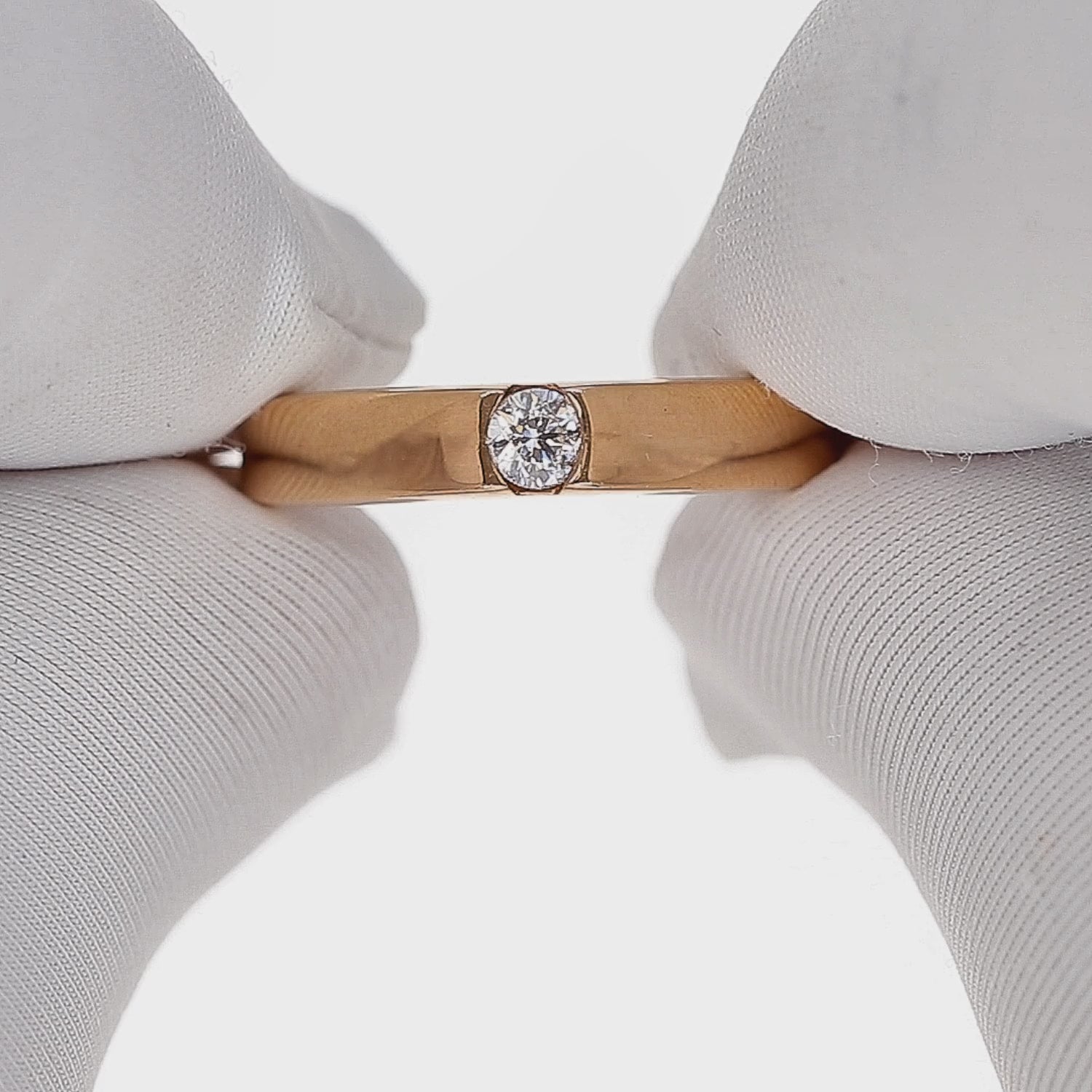 Šiuolaikiško dizaino raudono aukso žiedas su įleistu cirkoniu. Akmuo subtiliai įstatytas į metalo paviršių, sukuriant vientisą, minimalistinį įspūdį. Glotnus paviršius ir tvirta forma pabrėžia paprastumo eleganciją. Puikus pasirinkimas kasdienai ar subtiliai dovanai.
