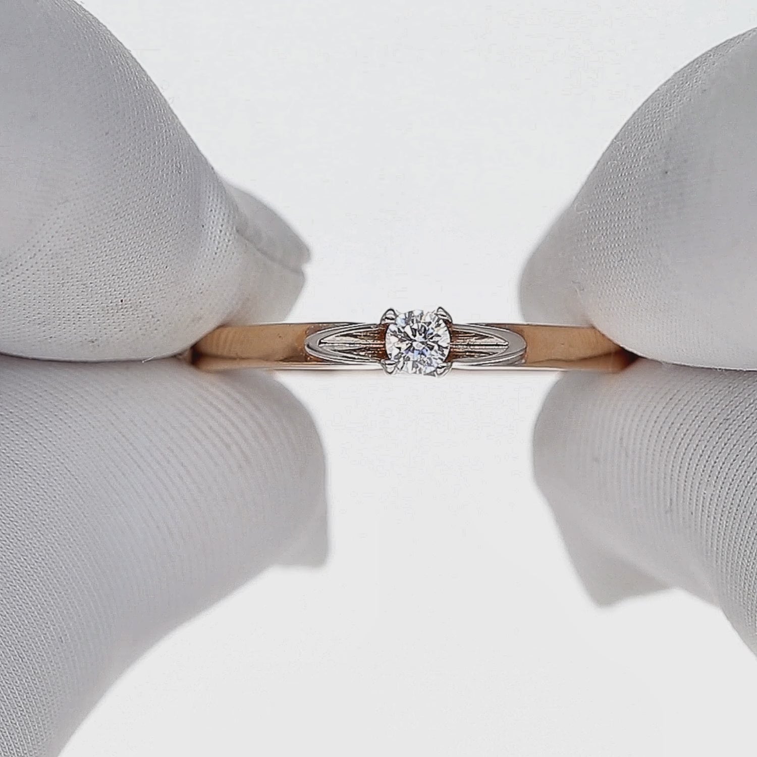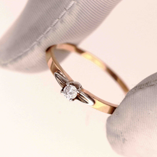 Subtilus raudono ir balto aukso žiedas su vienu centriniu cirkoniu. Dviejų spalvų derinys išryškina akmens spindesį ir suteikia žiedui modernios elegancijos. Lengvas ir grakštus dizainas puikiai tinka tiek kasdienai, tiek ypatingai progai.