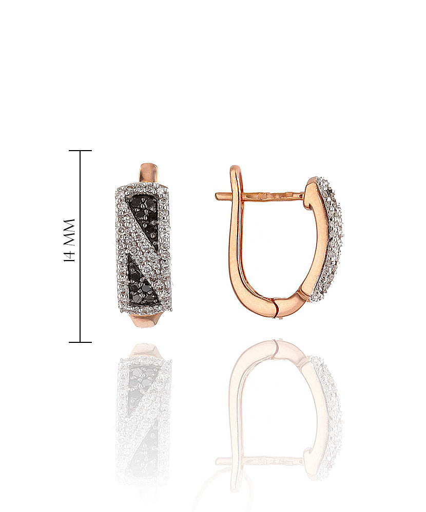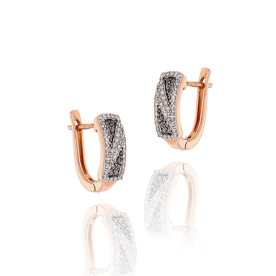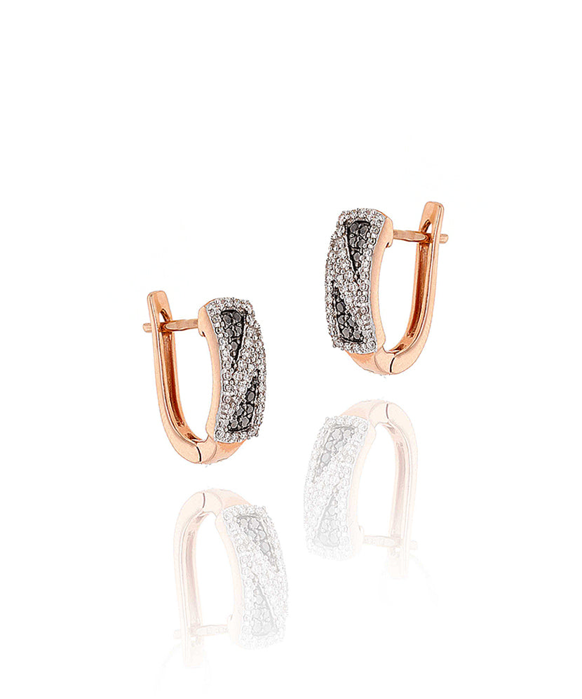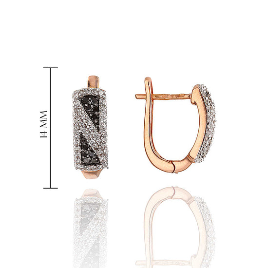 Rožinio aukso auskarai su juodaisiais ir baltaisiais briliantais