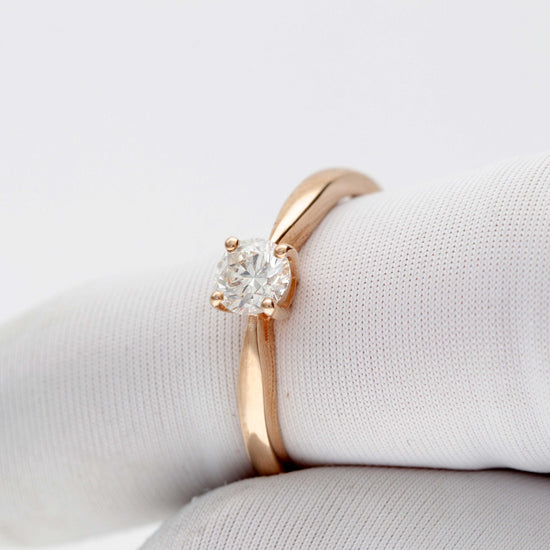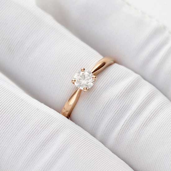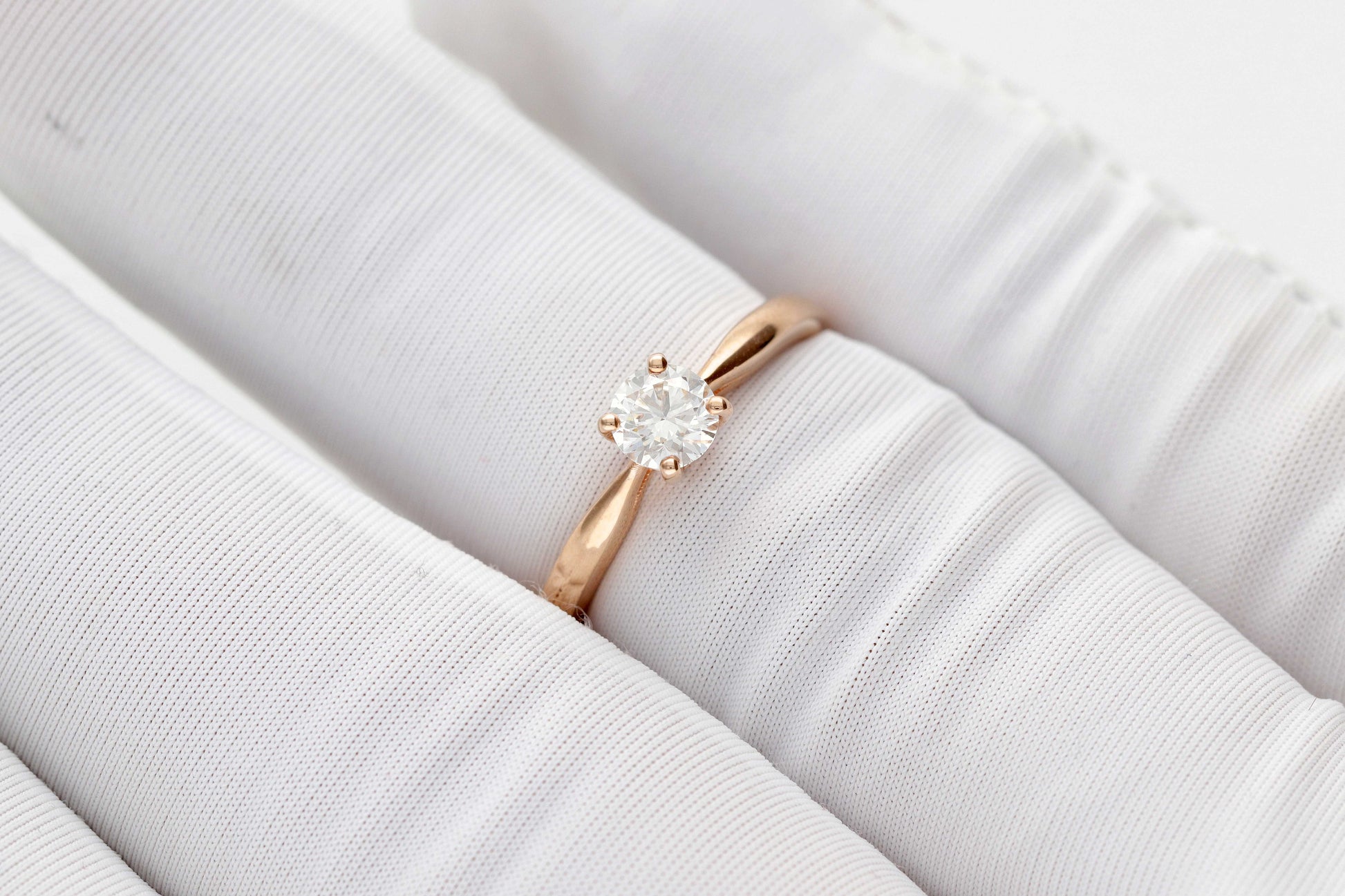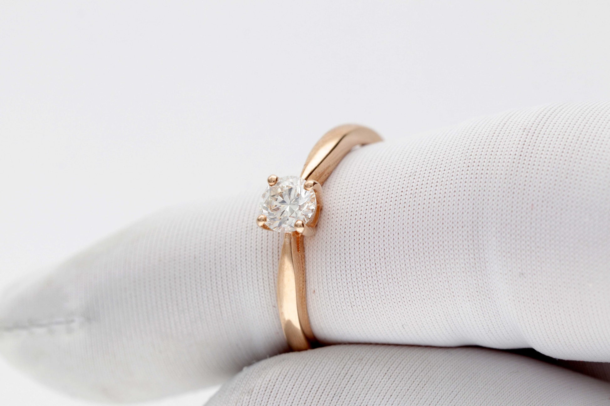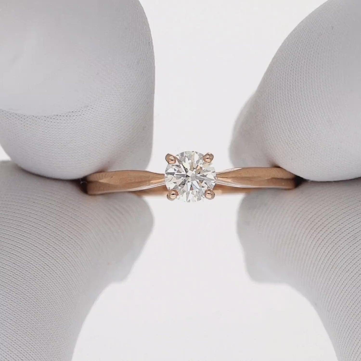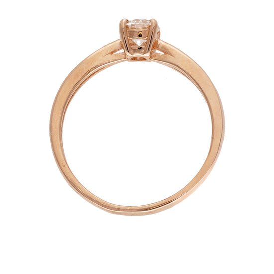 Rausvo aukso žiedas su subtilia deimanto akute spindi amžina elegancija ir švelniu žavesiu. Tai papuošalas, kuris išlieka nepriekaištingas kiekvienai progai ir kasdienai.