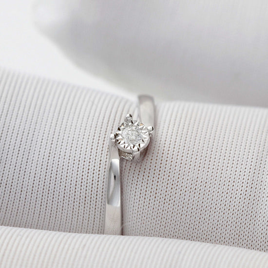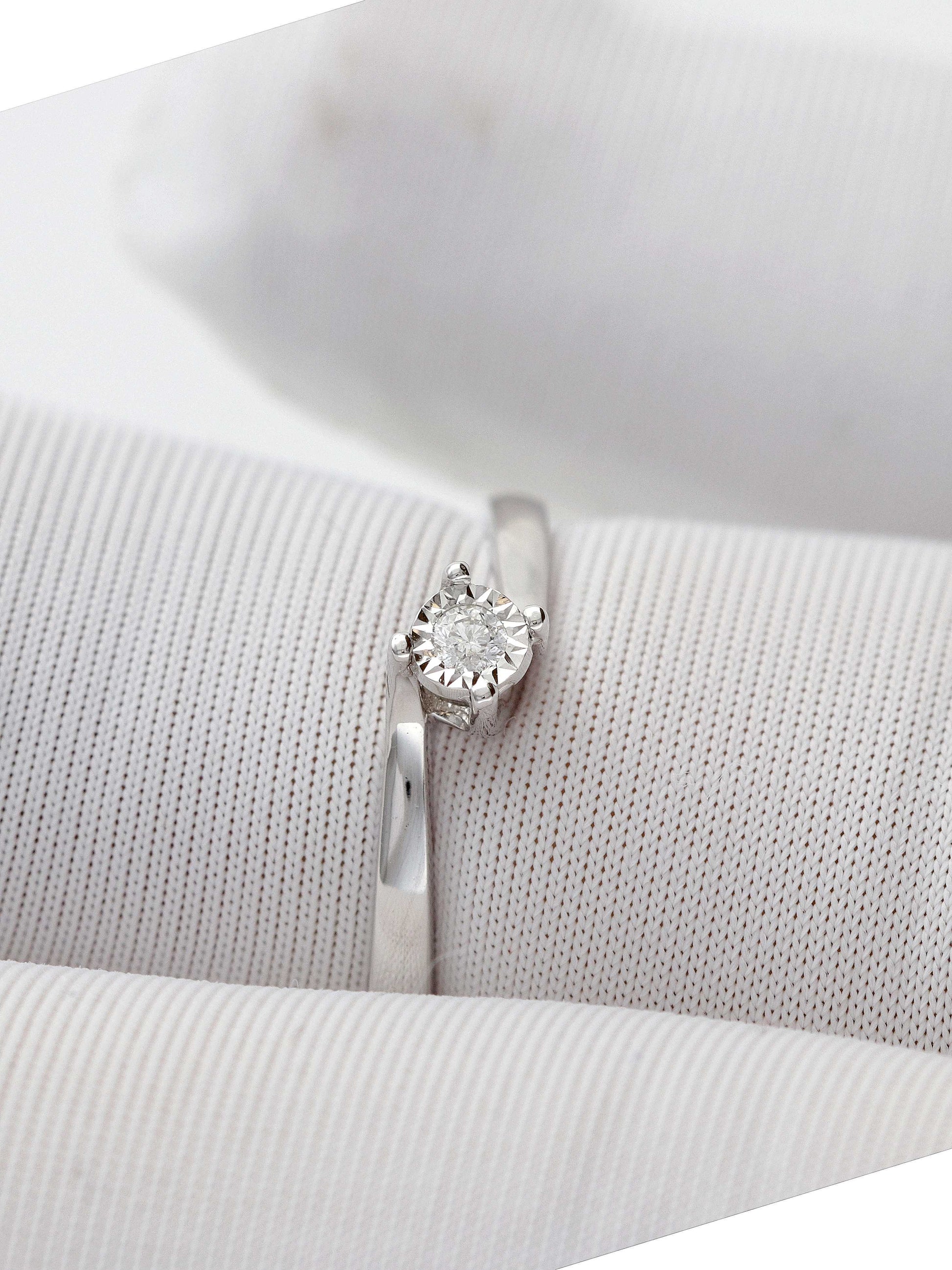 Subtilus balto aukso žiedas su briliantu spindi rafinuotu žavesiu. Tai puikus pasirinkimas moteriai, vertinančiai eleganciją, kokybę ir laiko patikrintą stilių.