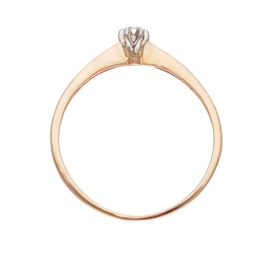 Prabangus rausvo aukso žiedas su centriniu deimantu ir žėrinčiomis šoninėmis akutėmis. Spindintis akmenų derinys sukuria nepriekaištingą šviesos žaismą ir išskirtinį elegancijos pojūtį.