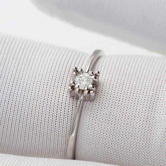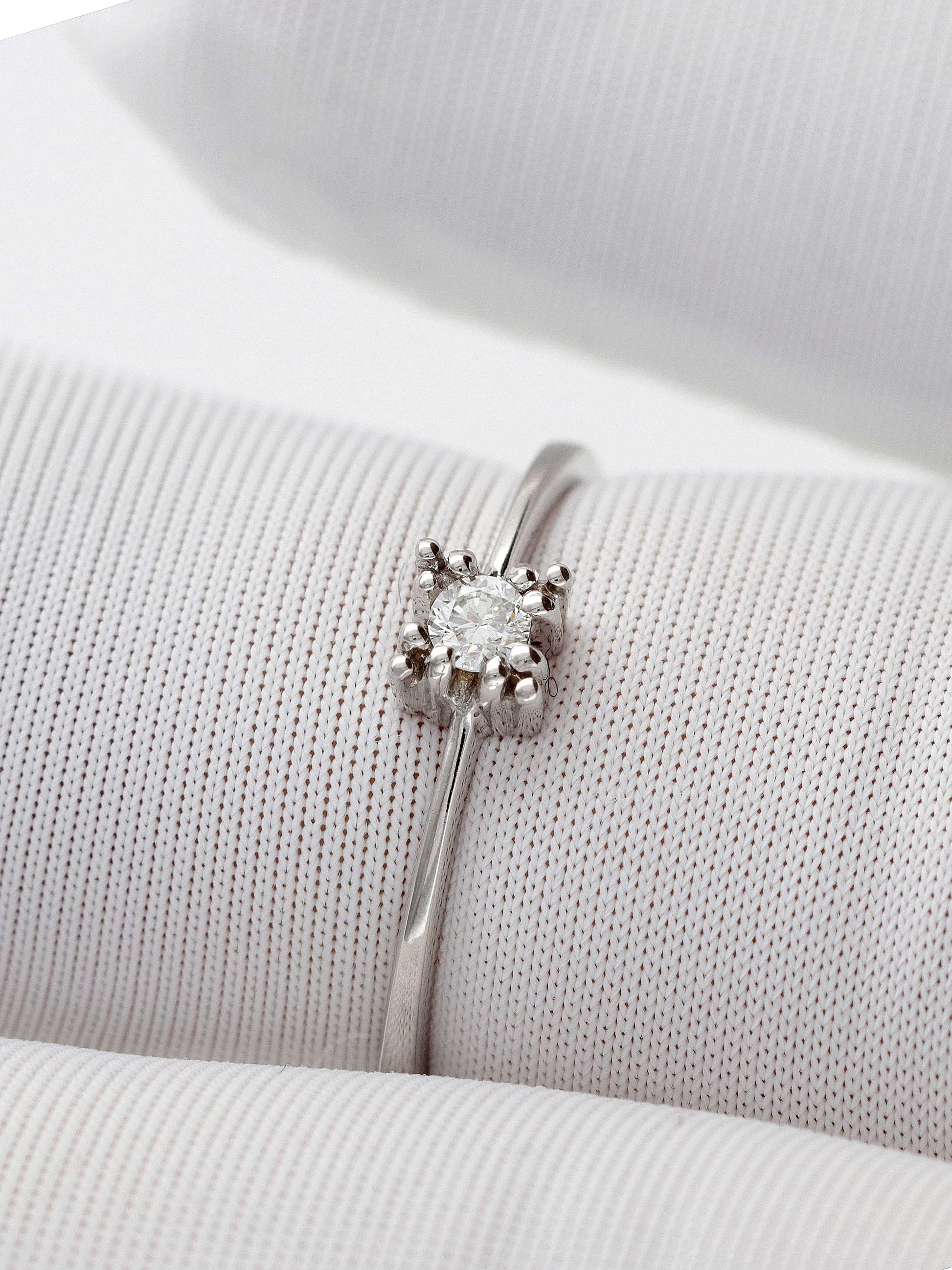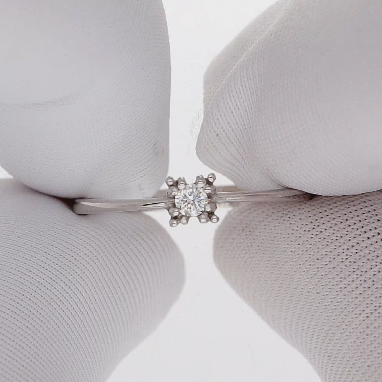 Subtilus balto aukso žiedas su briliantu spindi rafinuotu žavesiu. Tai puikus pasirinkimas moteriai, vertinančiai eleganciją, kokybę ir laiko patikrintą stilių.