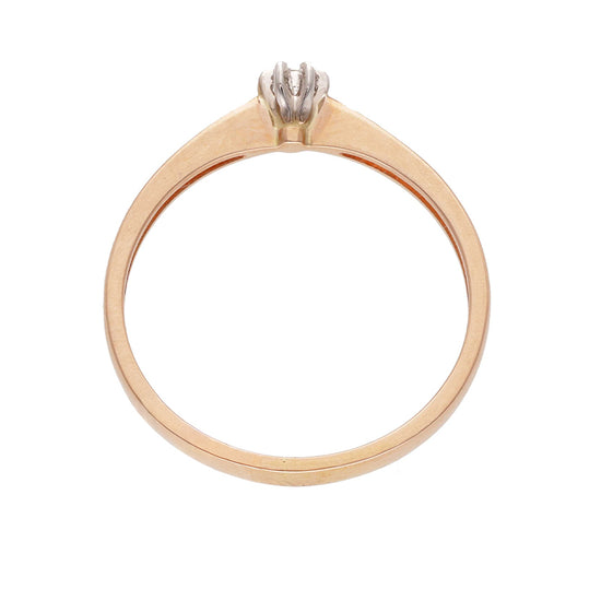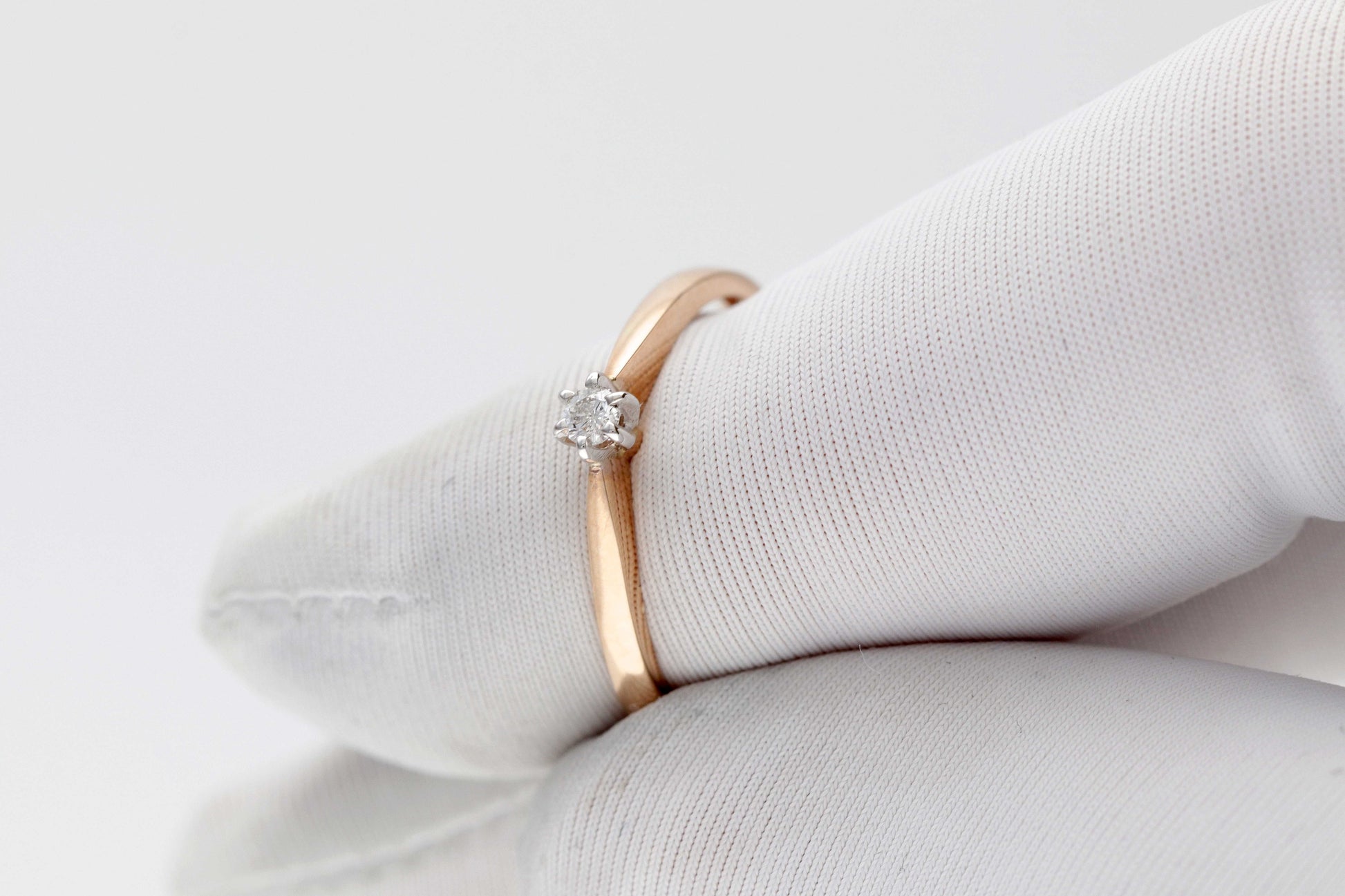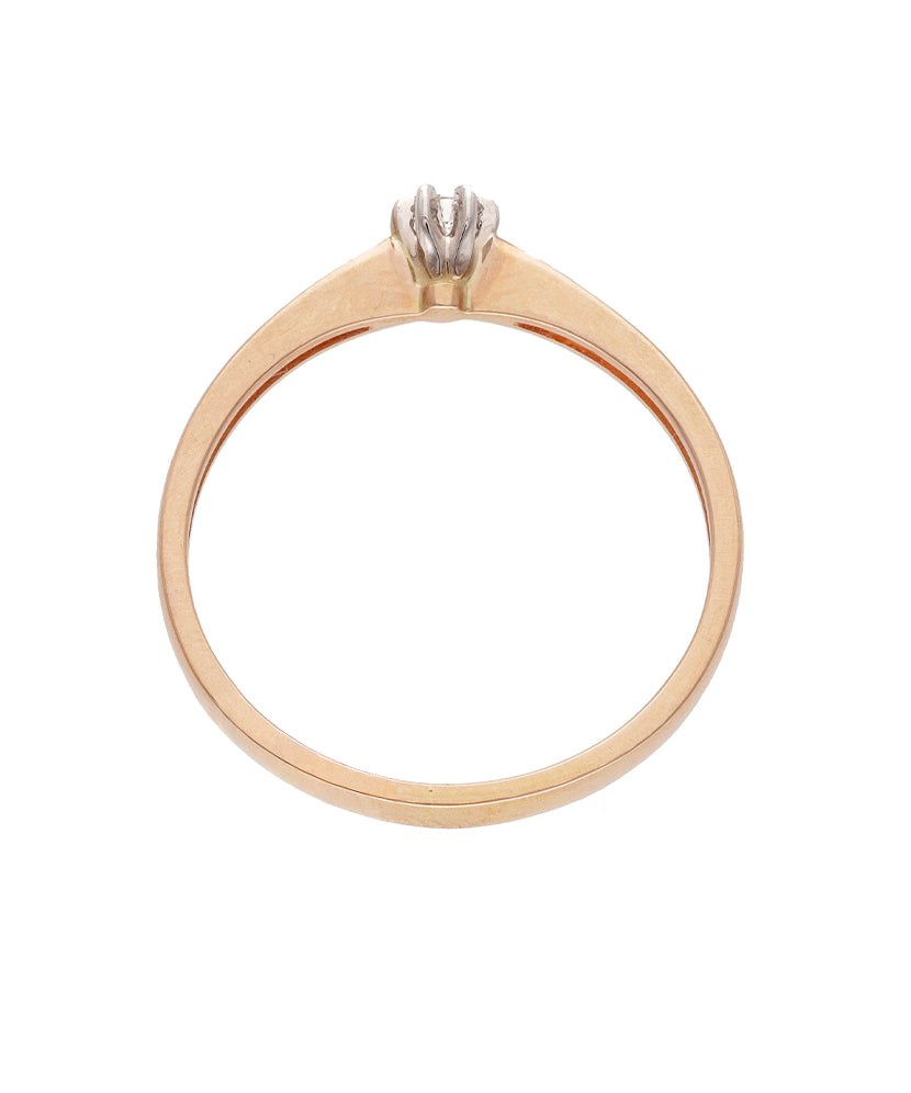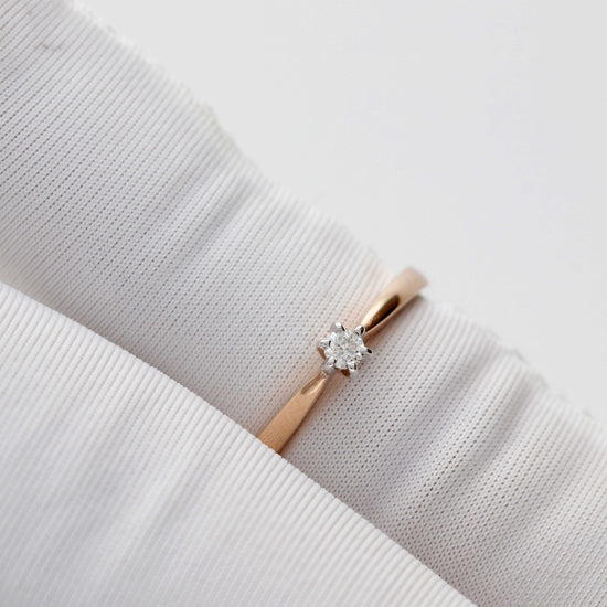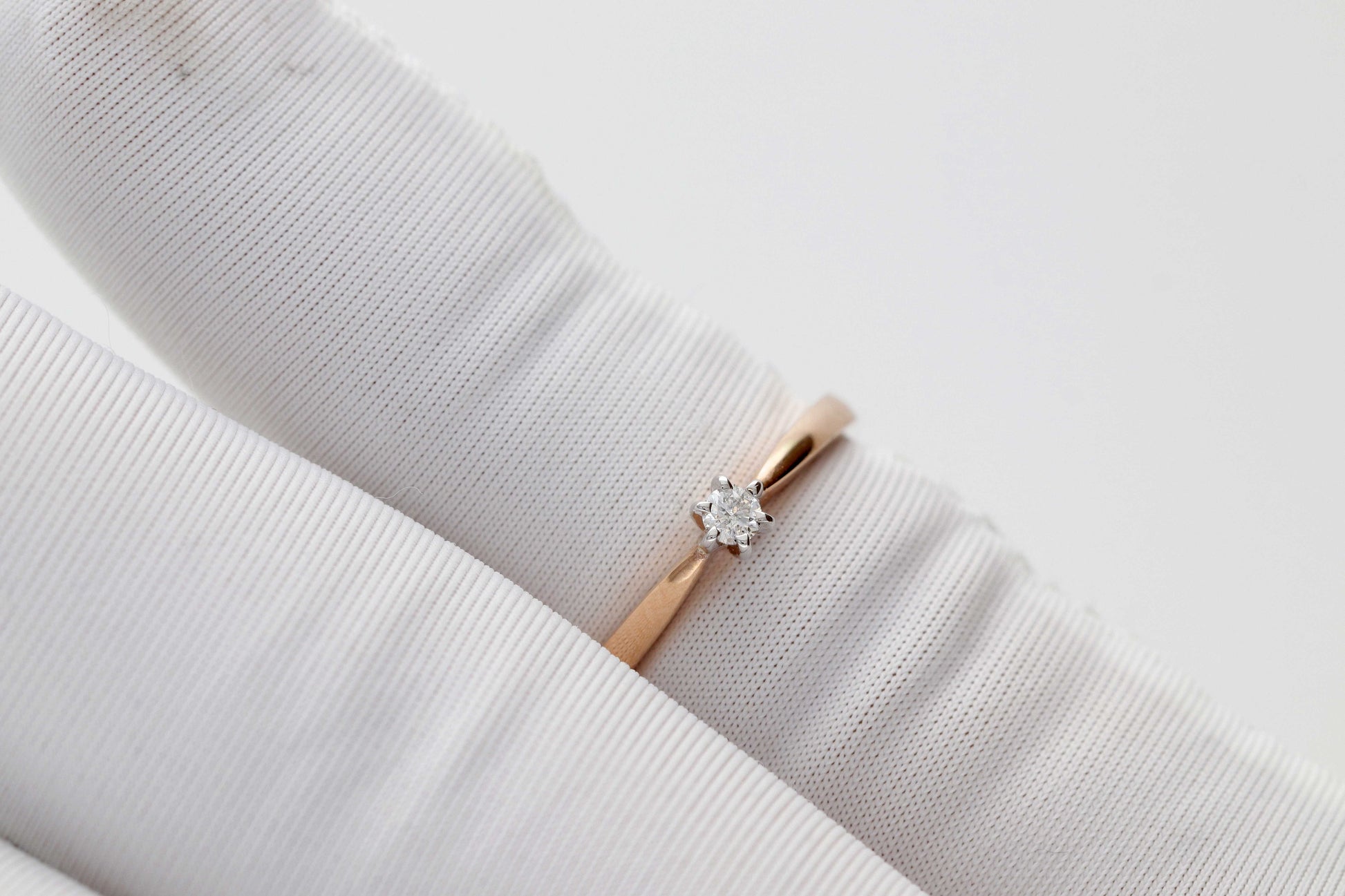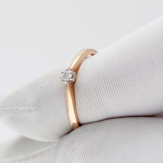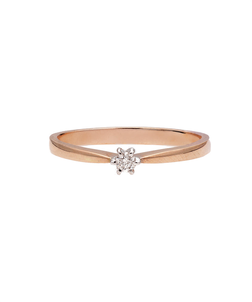 Rausvo aukso žiedas su briliantu spindi amžina elegancija ir subtilia prabanga. Akmuo kruopščiai įstatytas, kad pabrėžtų žiedo žvilgesį ir rafinuotą stilių.