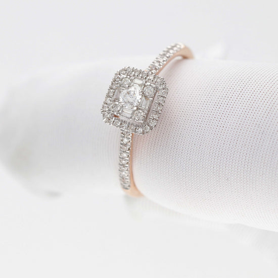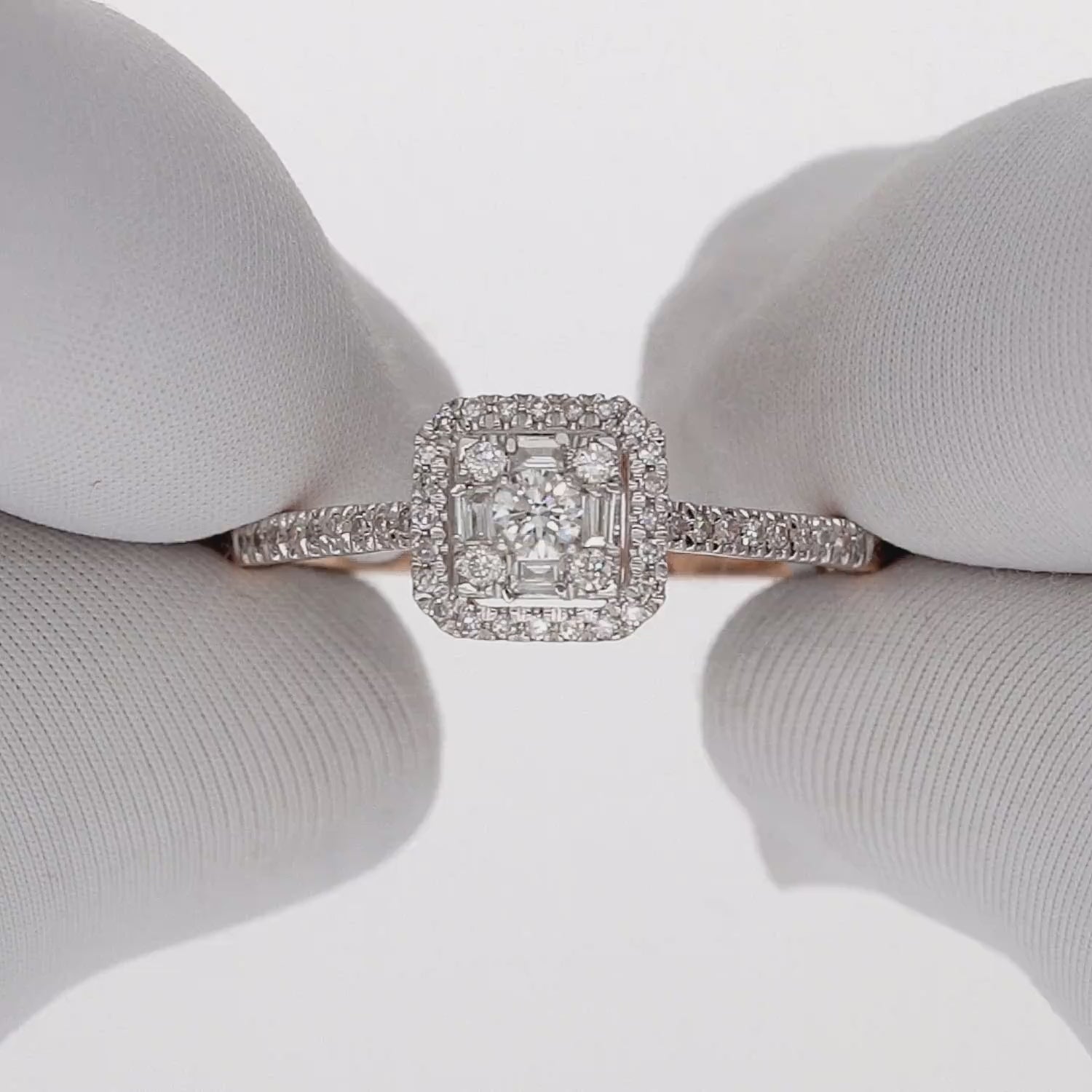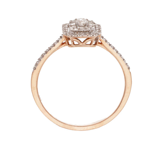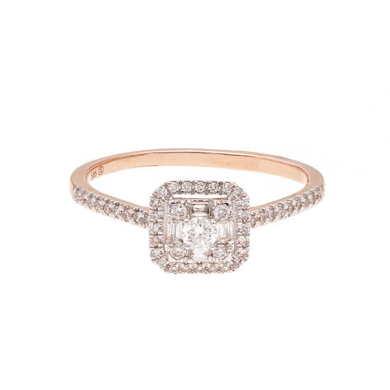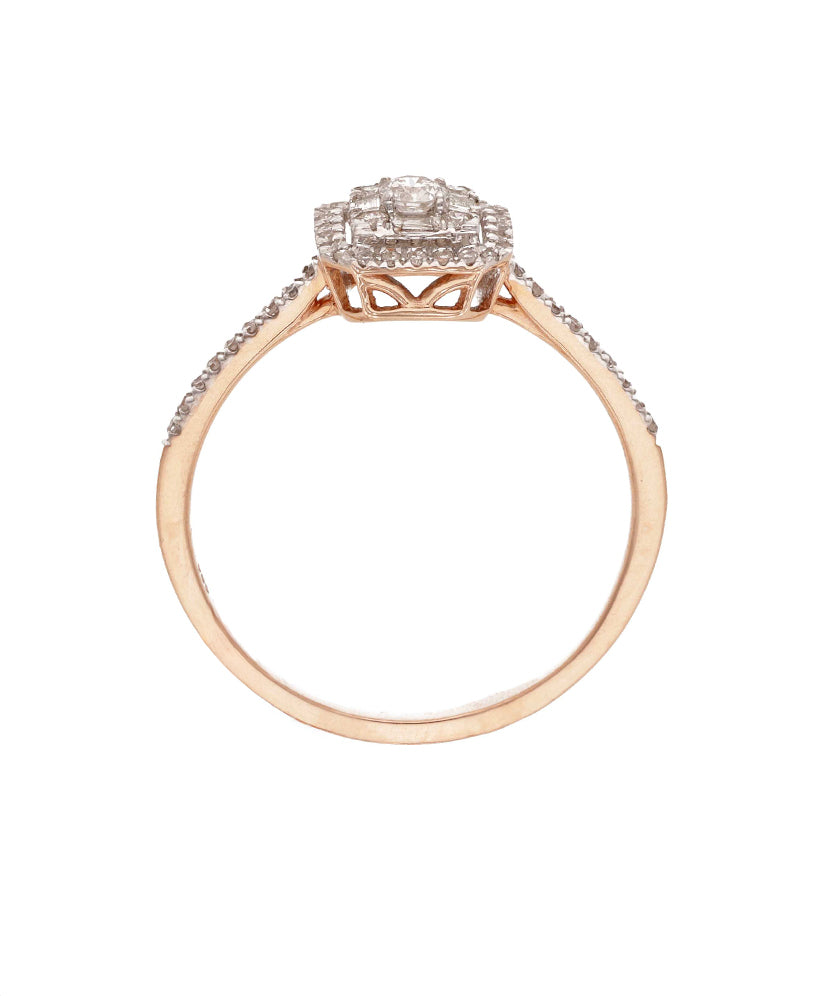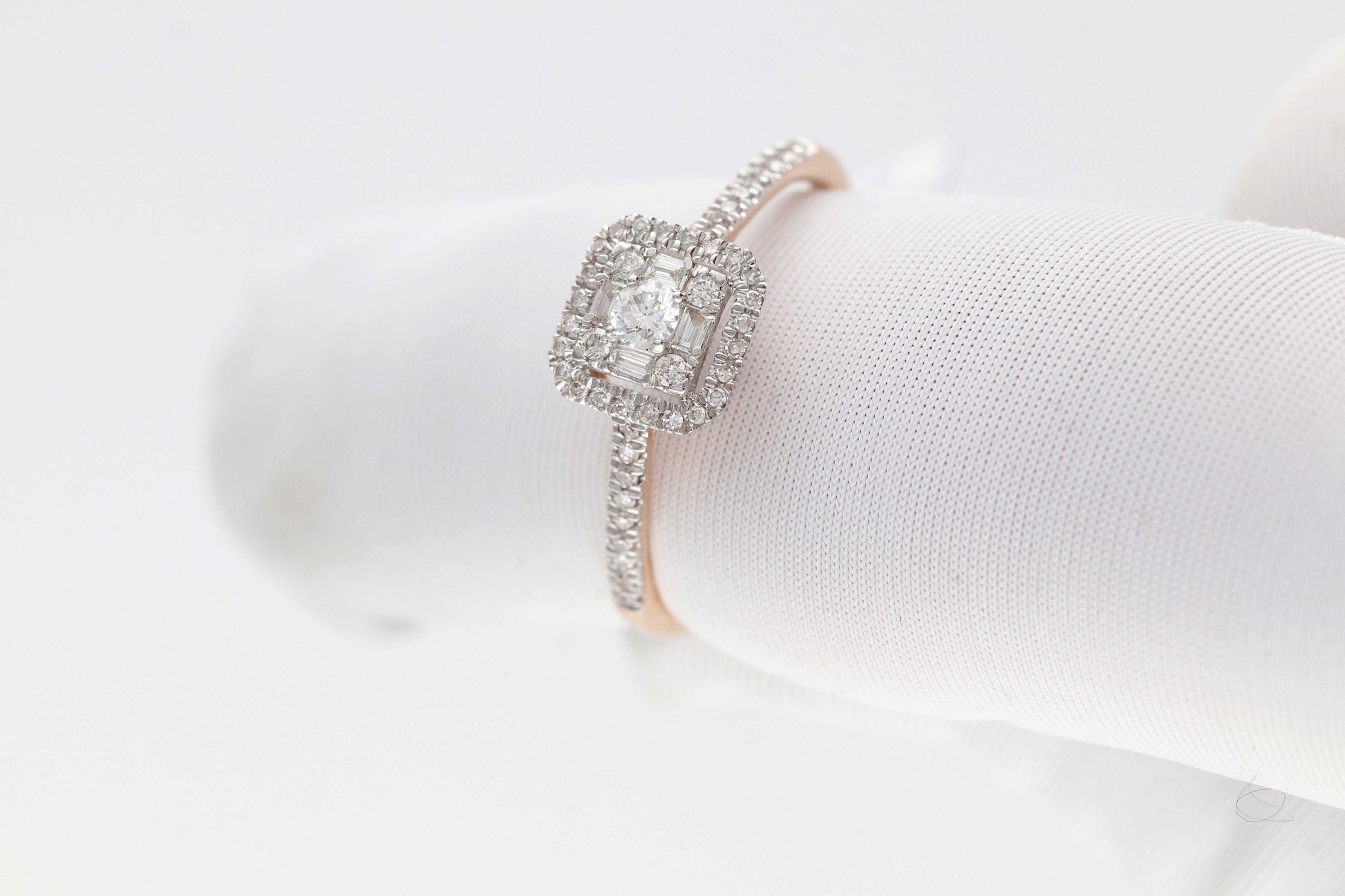 Rausvo aukso žiedas su deimantais – subtilios prabangos akcentas. Šis žiedas spindi elegancija ir tinka tiek kasdienai, tiek ypatingoms progoms.