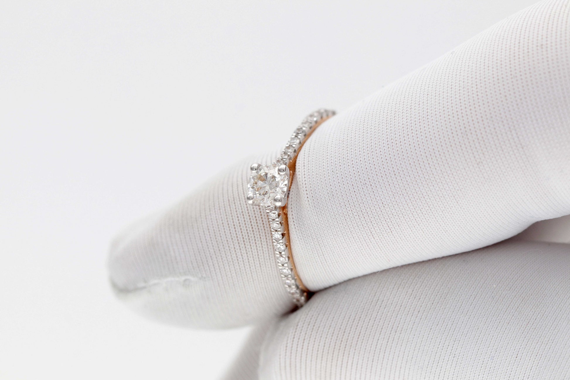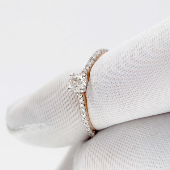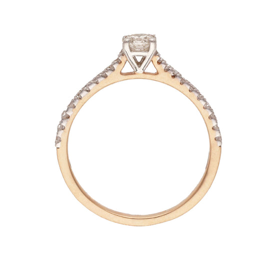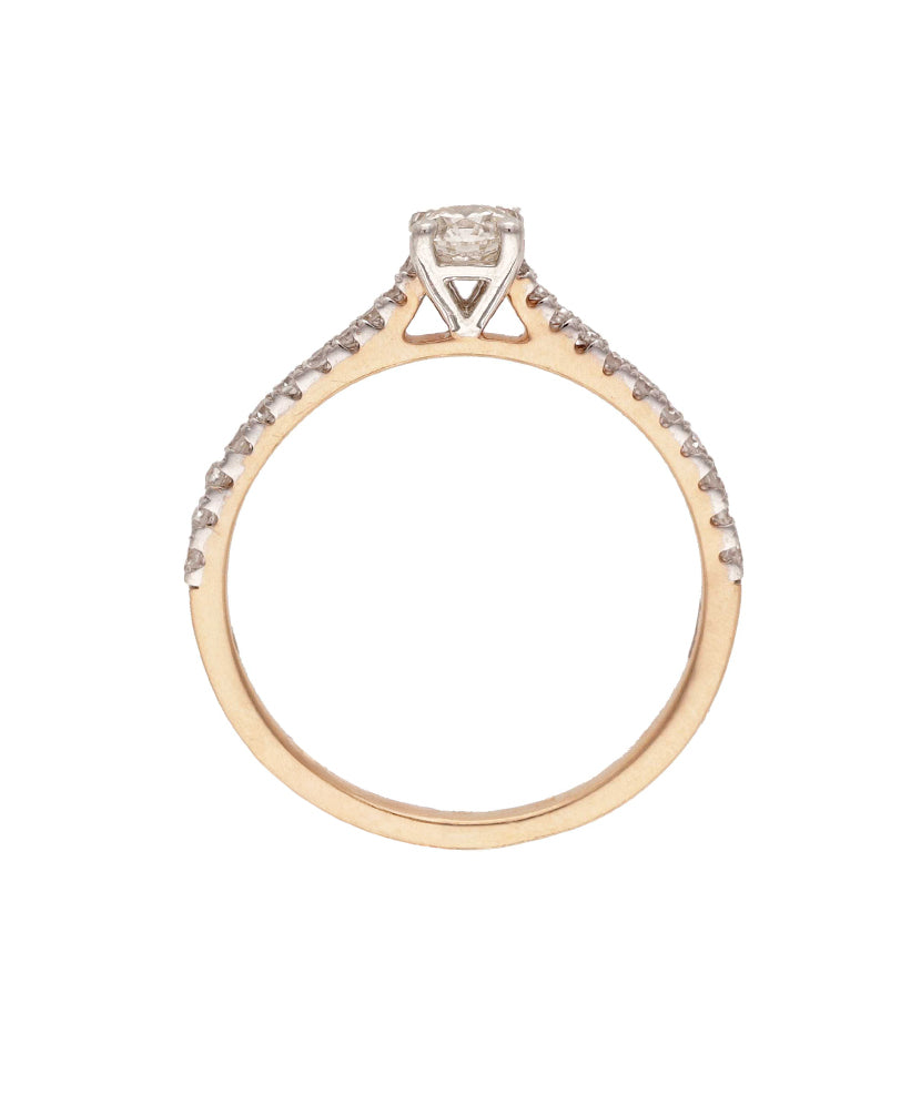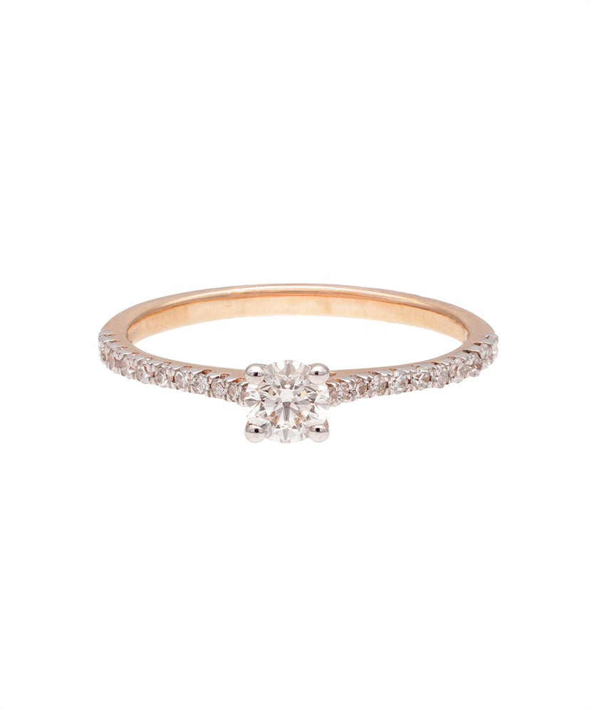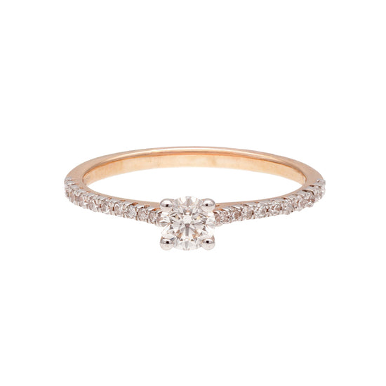 Rausvo aukso žiedas su deimantais – subtilios prabangos akcentas. Šis žiedas spindi elegancija ir tinka tiek kasdienai, tiek ypatingoms progoms.
