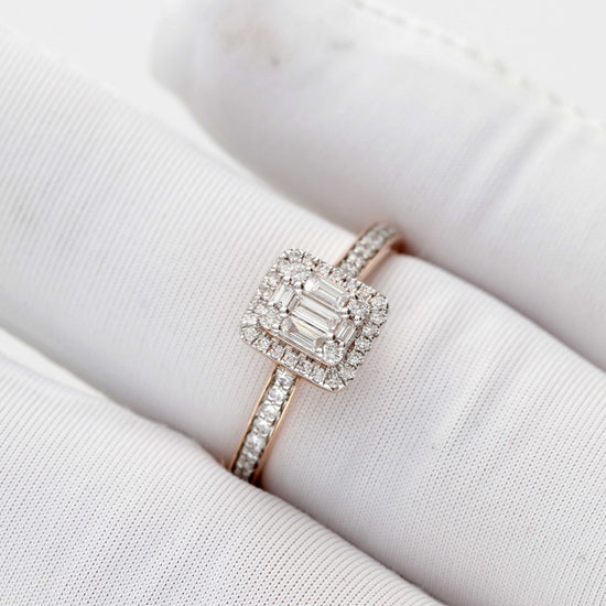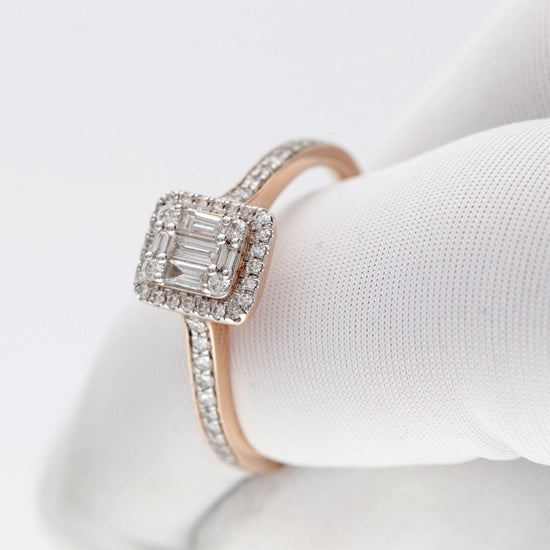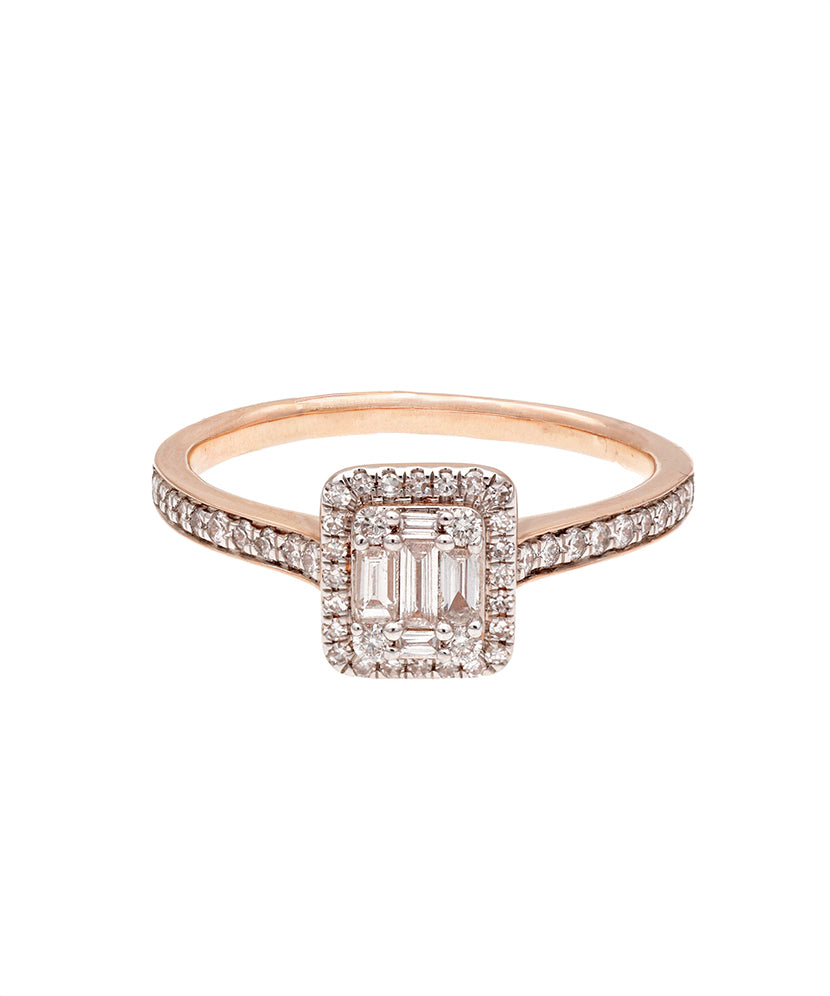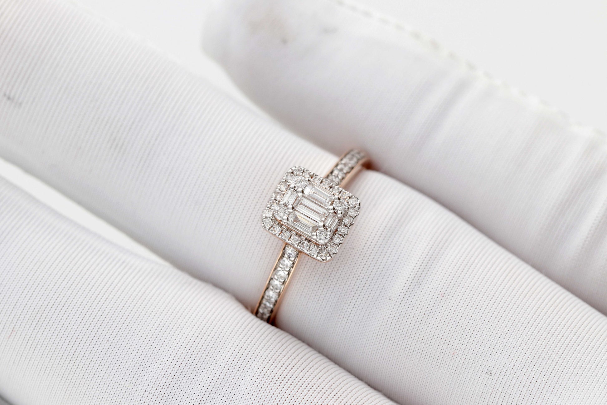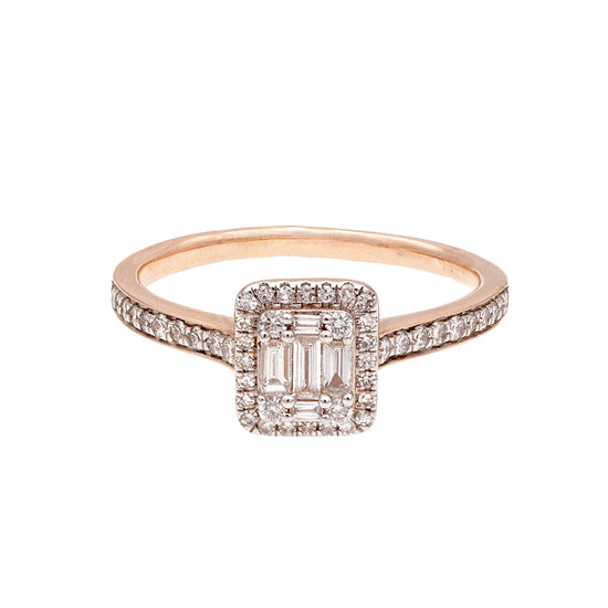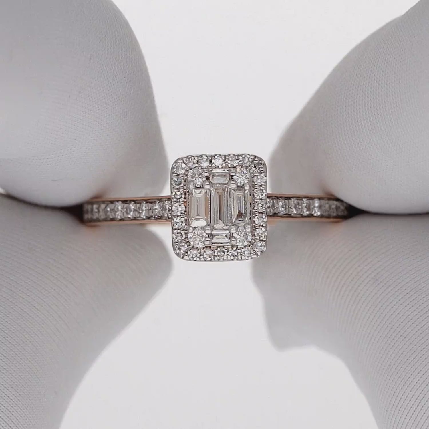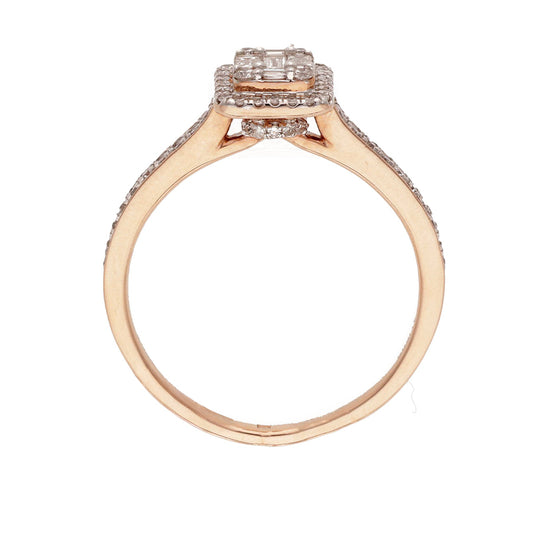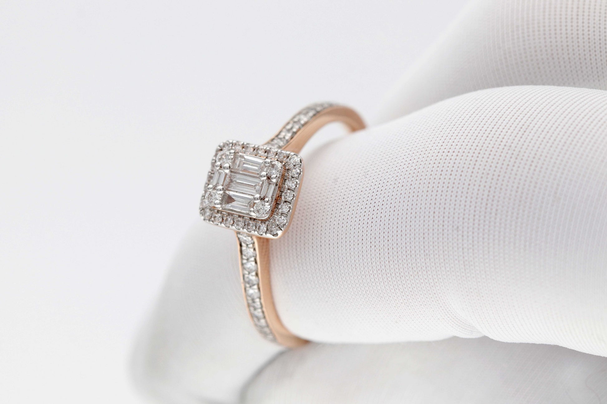 Rausvo aukso žiedas su deimantais – subtilios prabangos akcentas. Šis žiedas spindi elegancija ir tinka tiek kasdienai, tiek ypatingoms progoms.