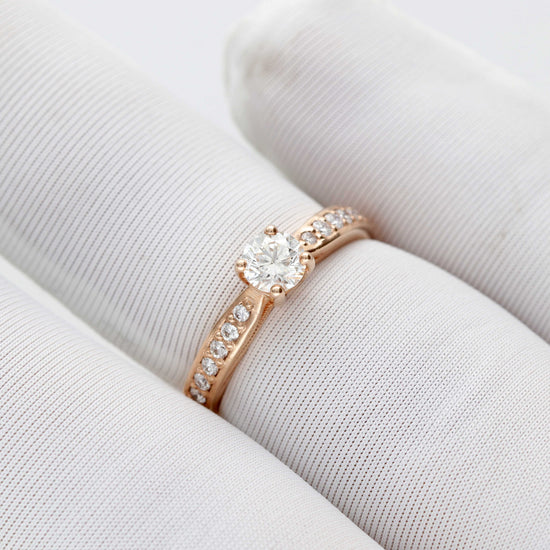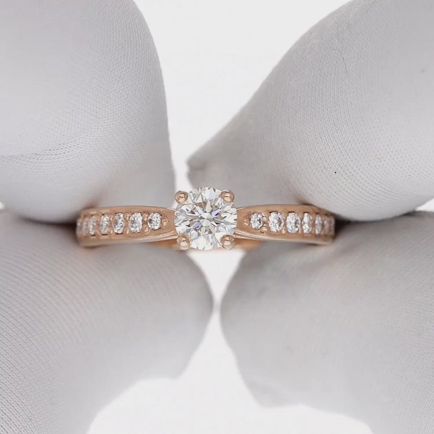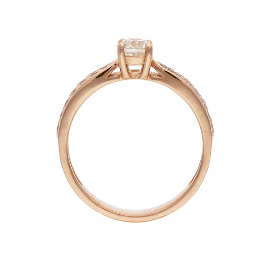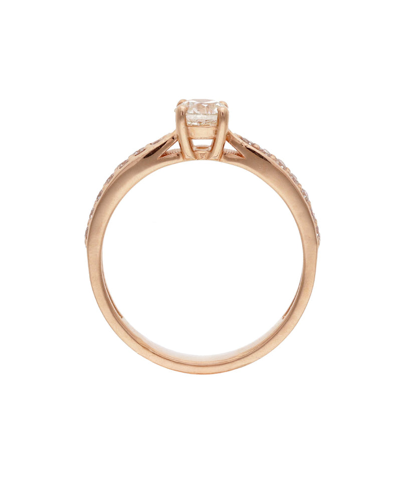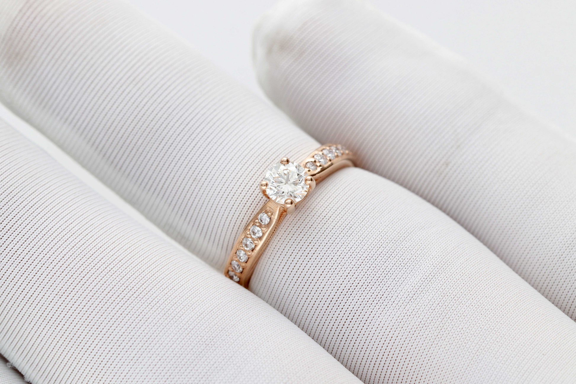 Subtilus rausvo aukso žiedas su žėrinčiu briliantu traukia akį savo švytėjimu. Tai tobulas pasirinkimas romantiškai progai ar kasdieniam išskirtinumo akcentui.