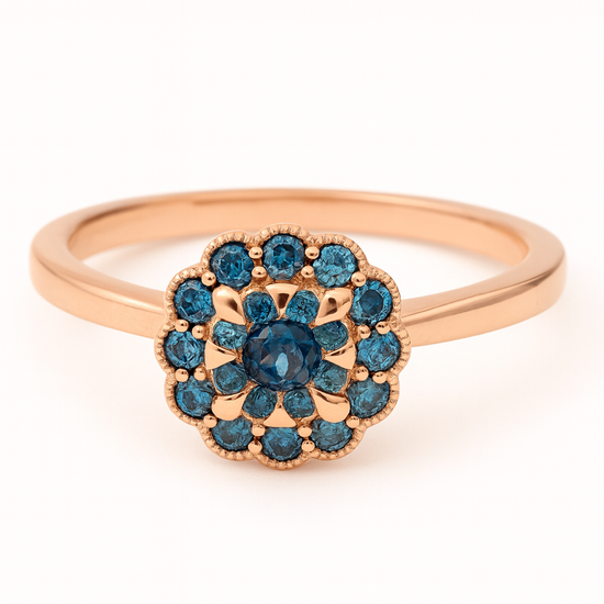 Auksinis žiedas su briliantais ir topazu. Šis prabangus 585 prabos (14K) raudonojo aukso žiedas puošiamas apvaliu topazu, suteikiančiais jam išskirtinį spindesį ir eleganciją. Tai puikus pasirinkimas ieškantiems prabangaus ir stilingo papuošalo ypatingoms progoms.